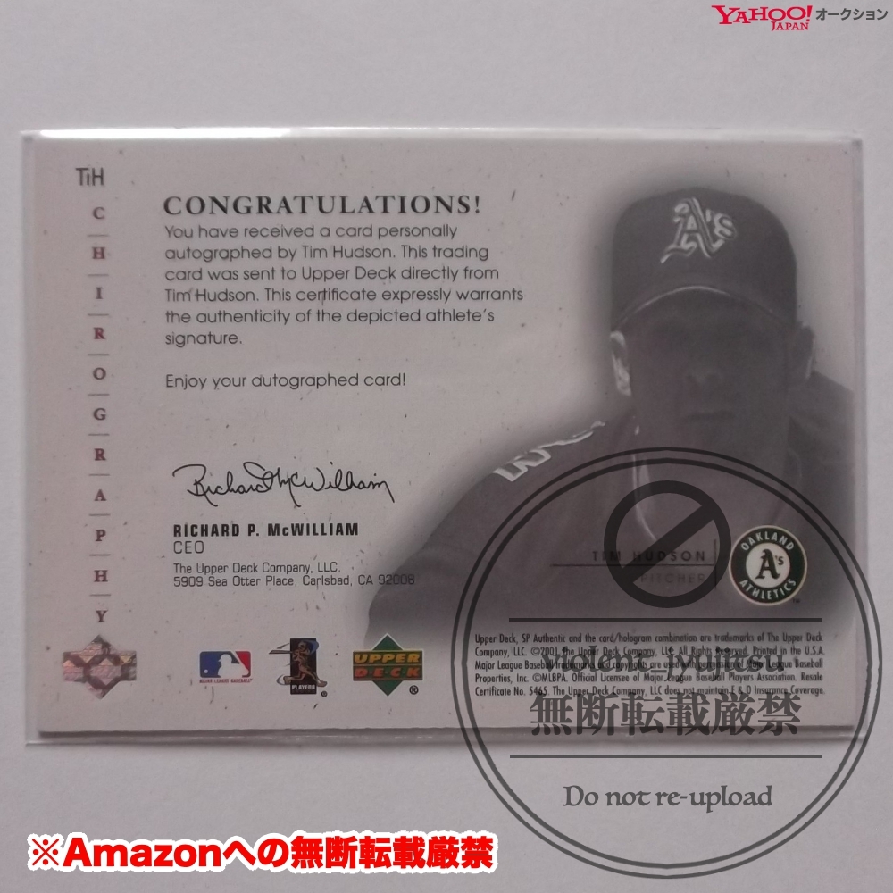 ■UPPER DECK 2001 SP AUTHENTIC MAJOR LEAGUE BASEBALL TiH - Chirography - OAKLAND ATHELETICS Tim Hudson(UPPER DECK)