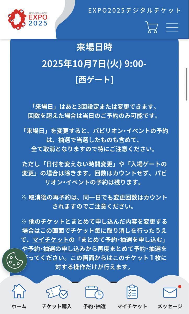 万博IDが必要となりますのでご登録いただき、受け渡し期限が切れる前の24時間以内にお受け取りをお願いいたします。
