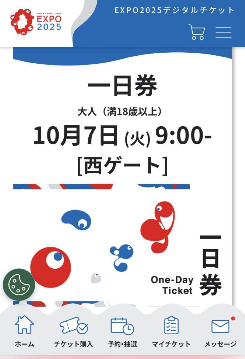・2025年10月7日(火) 西ゲート 9時〜 大人2枚セット(表示価格は2枚セットのお値段です。)