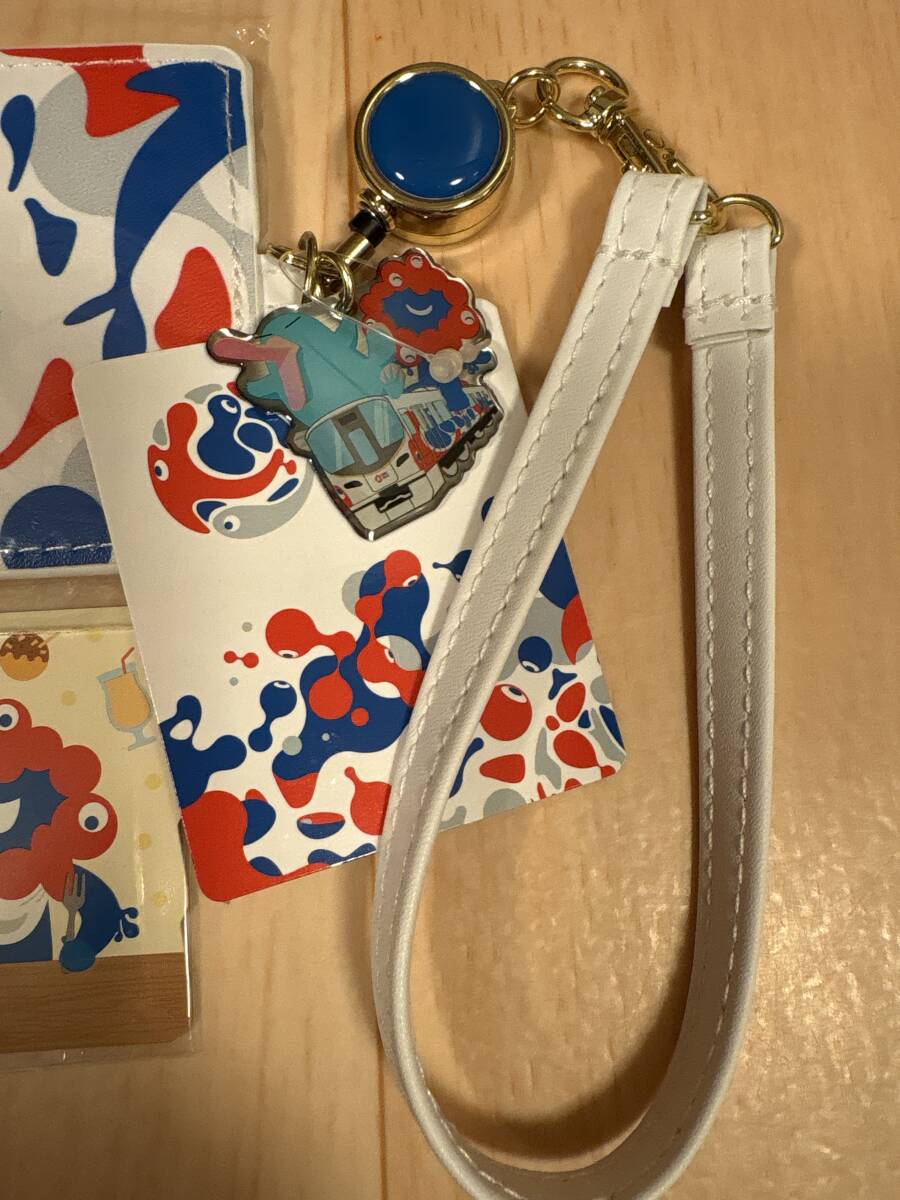 パスケースはリール付きになっているので、使いやすいと思います。イコちゃんとミャクミャクのキーホルダーもついており、かわいいお品です。