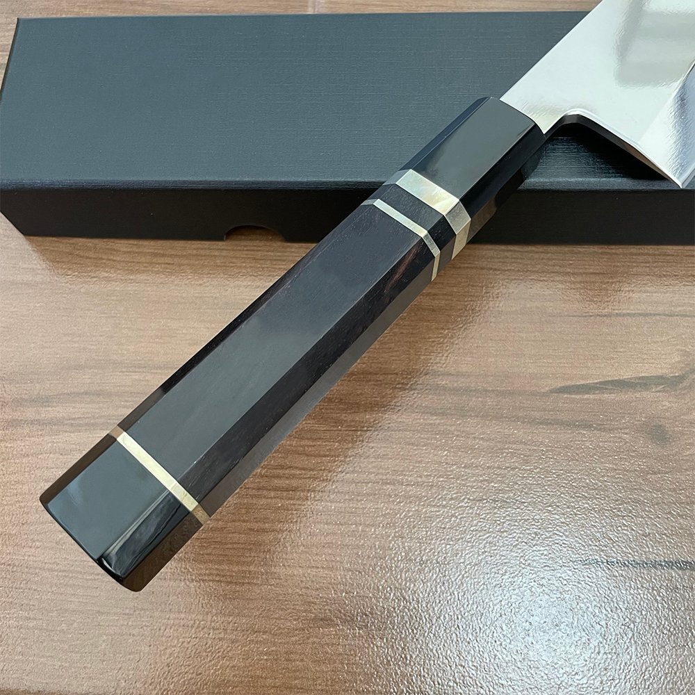【即納】風刃 刺身包丁 和包丁牛刀【鏡面仕上げ】VG10号本焼出刃包丁 黒檀柄八角柄 全長305mm 刃渡り180mm 鋼材V金10号 NK25B03