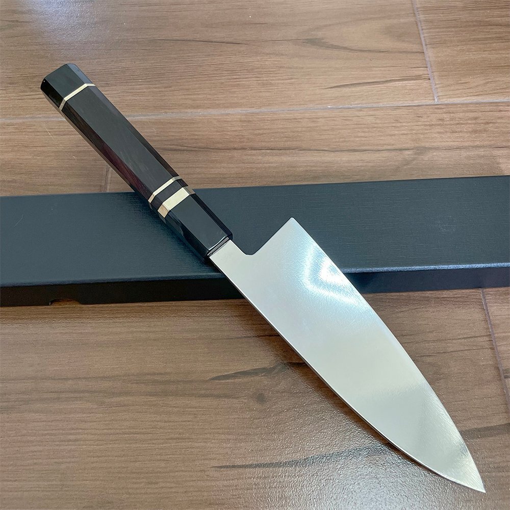取り回しのききやすいサイズで、家庭でも使いやすい包丁となっております。