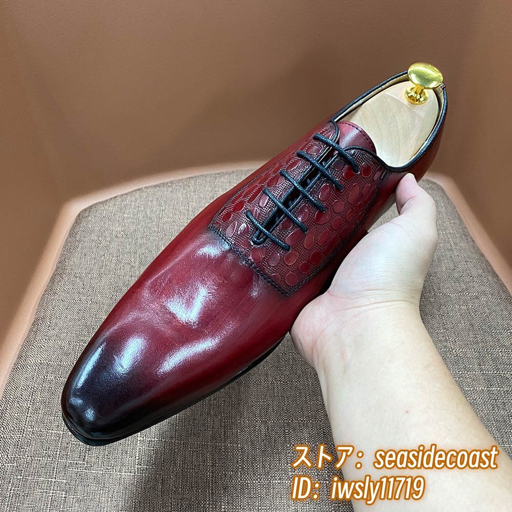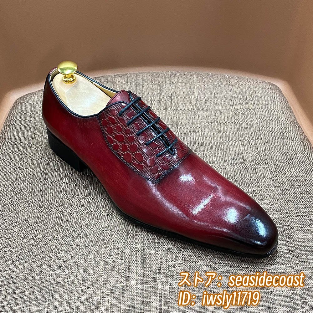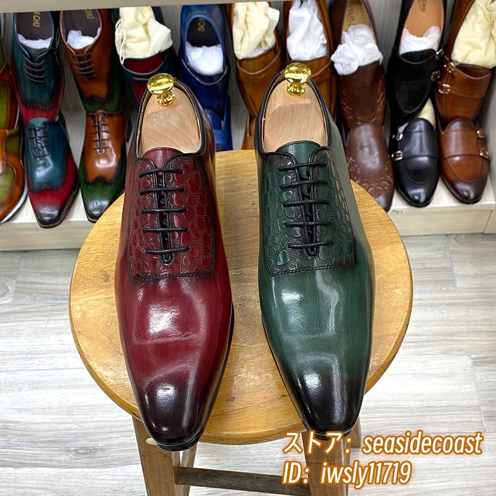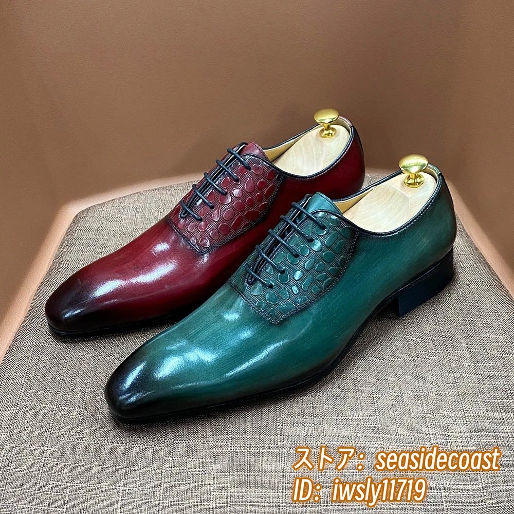 最高級◆超希少 メンズ ビジネスシューズ 手塗仕上げ 職人手作り 本革 レザーシューズ 上質牛革 紳士靴 革靴 フォーマル レッド 25.0cm