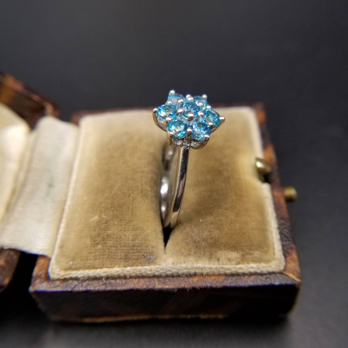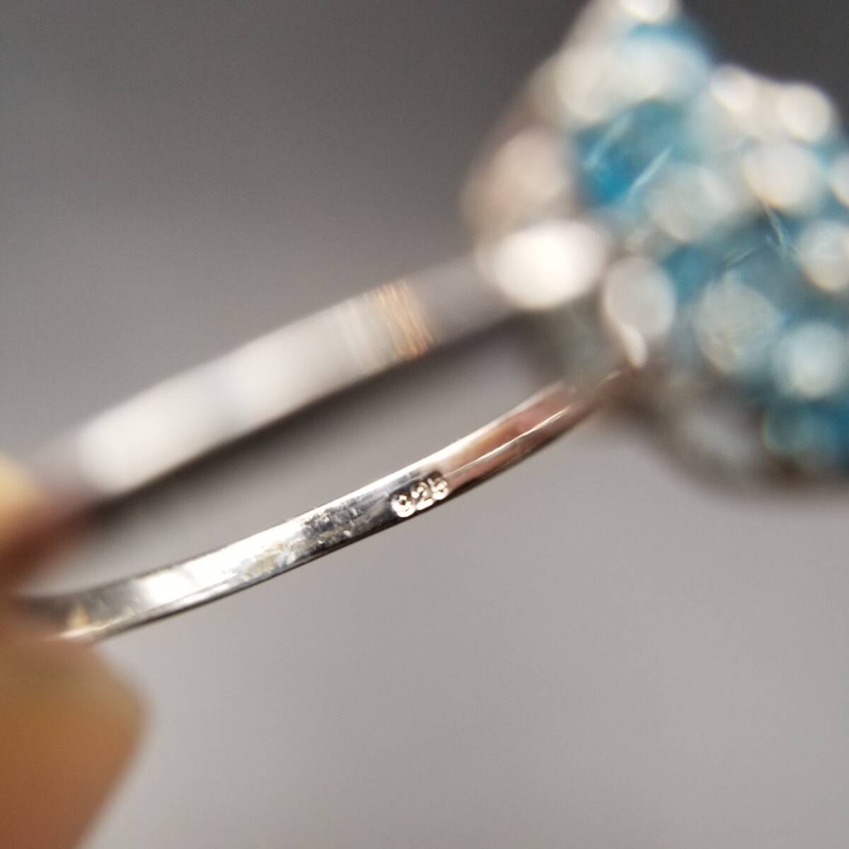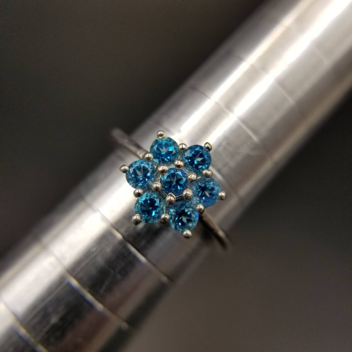 綺麗な水色のストーン 小花 925 シルバー フラワー リング 指輪 銀 上品 エレガント キュート 鮮やか 存在感 R16-S