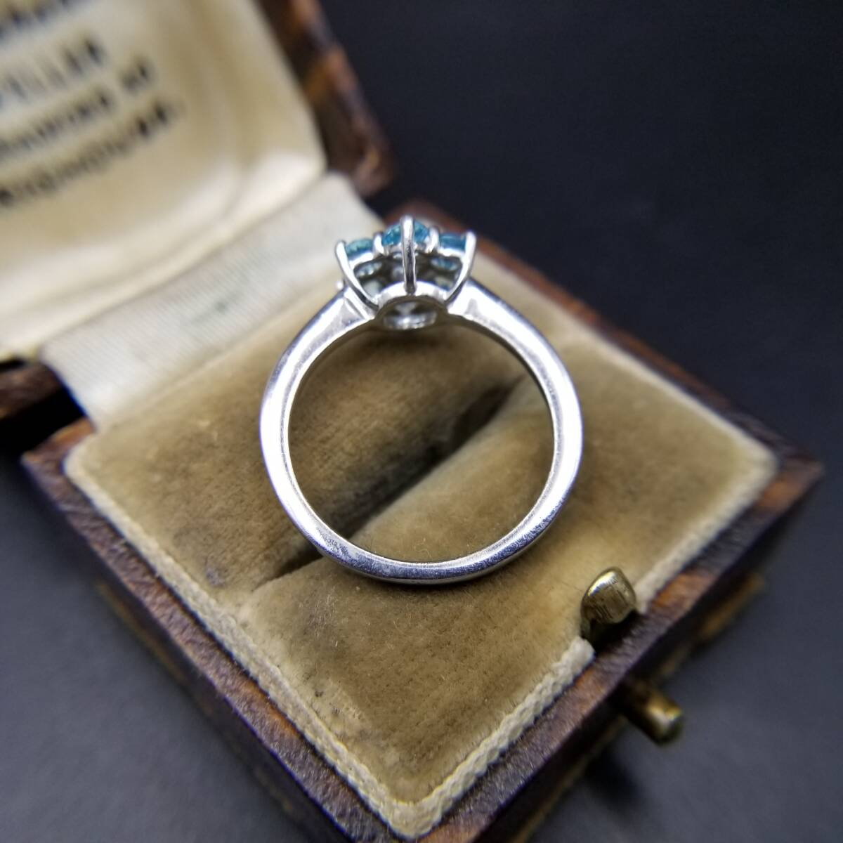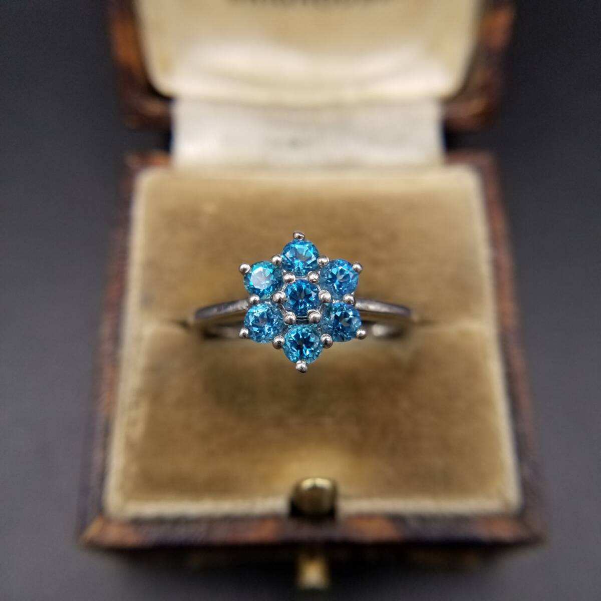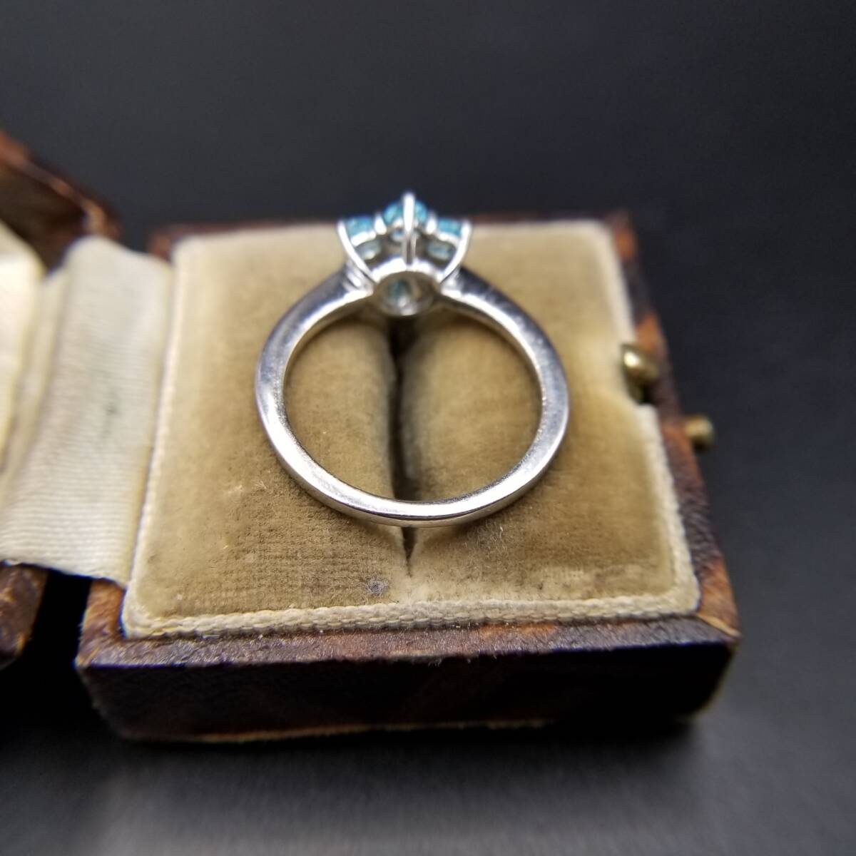 綺麗な水色のストーン 小花 925 シルバー フラワー リング 指輪 銀 上品 エレガント キュート 鮮やか 存在感 R16-S