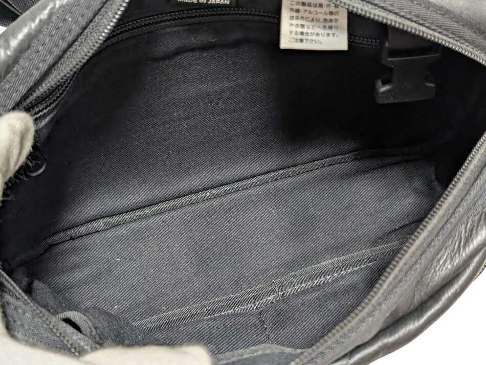 状態・・・ 前面のロゴタグにスレや糸抜け、レザー使用箇所に少々のスレや小傷箇所があります。バッグ内部に薄汚れ、取り外し可能なキーリングのようなものが元々付いているようですが、こちらは付属しません。