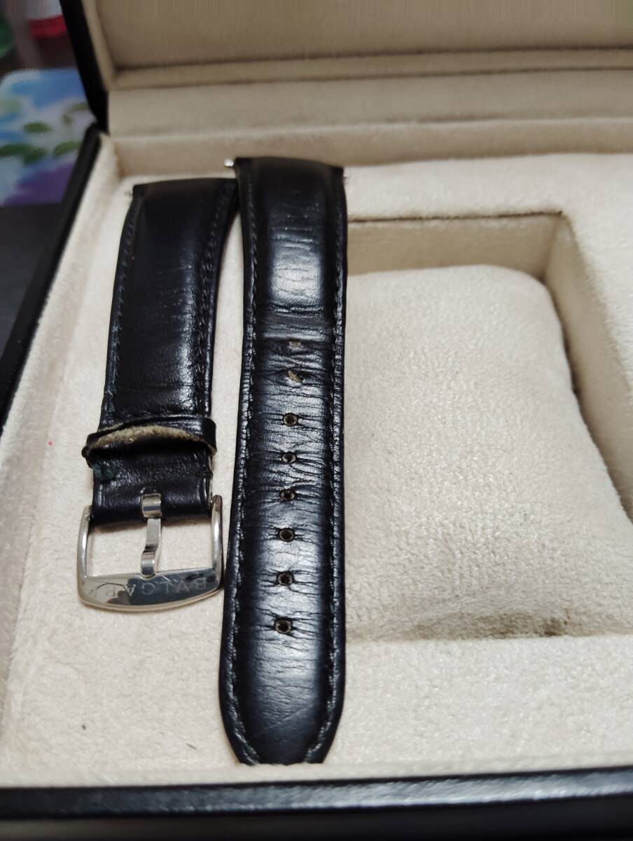 付属品:Box(外箱、内箱)、冊子入れ、冊子×2、ブルガリカード、純正革ベルト使用感あり