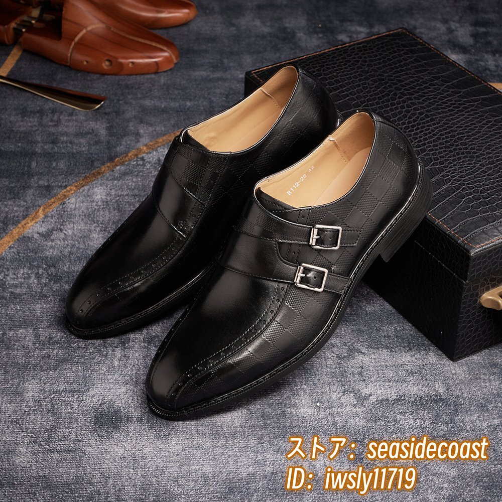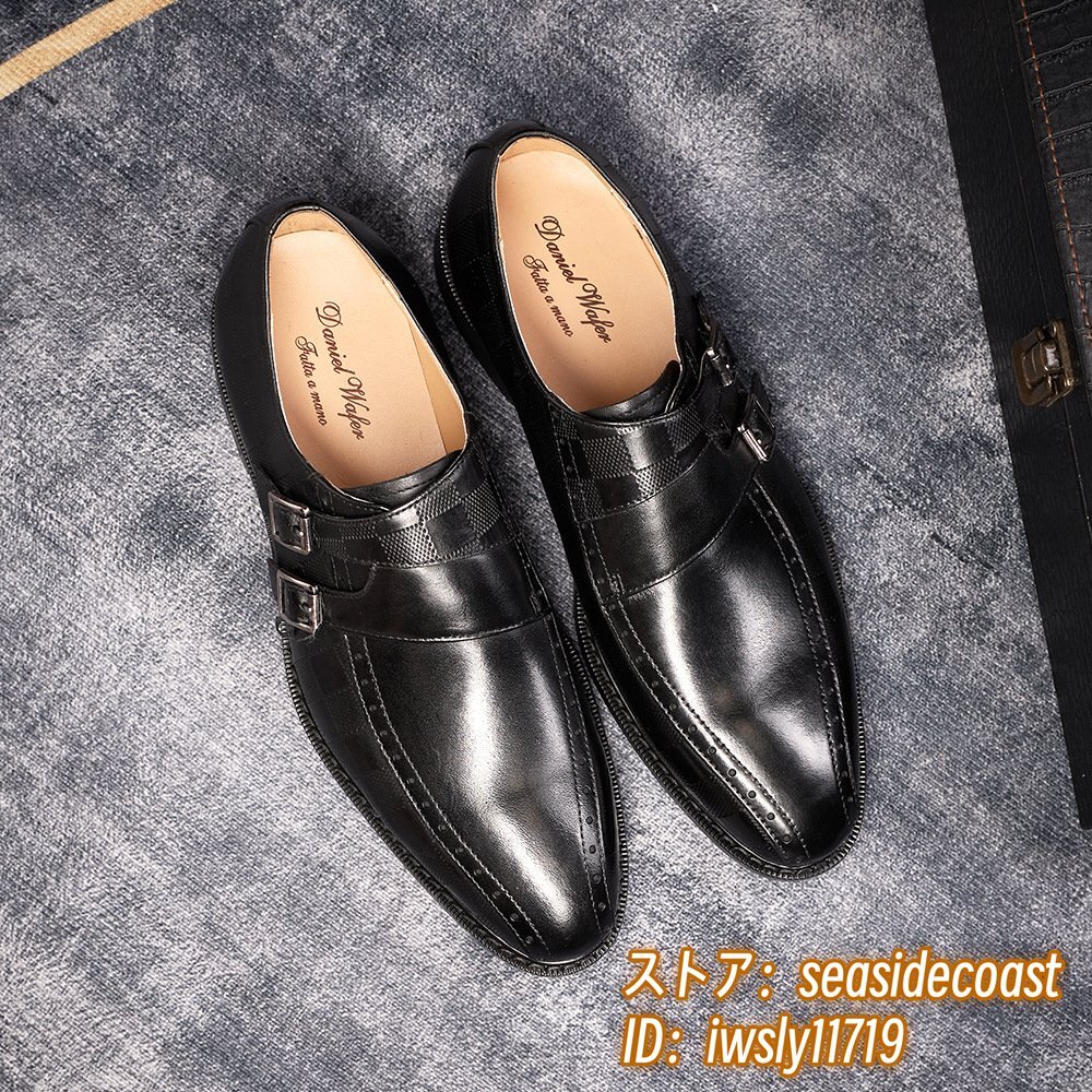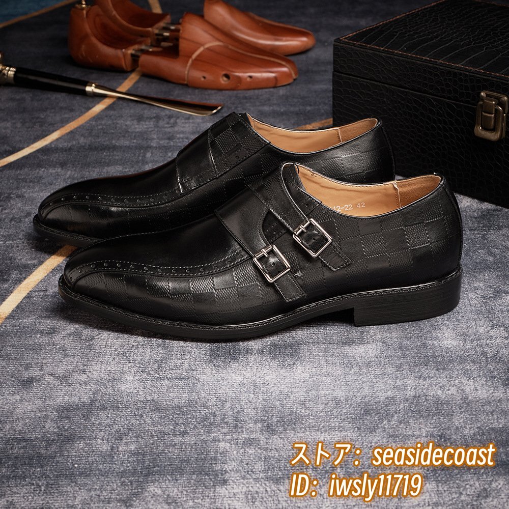 定価10万◆ダブルモンクストラップ 本牛革 メンズ 職人手作り ビジネスシューズ 本革 レザーシューズ 超希少 紳士靴 革靴 ブラック 28.0cm