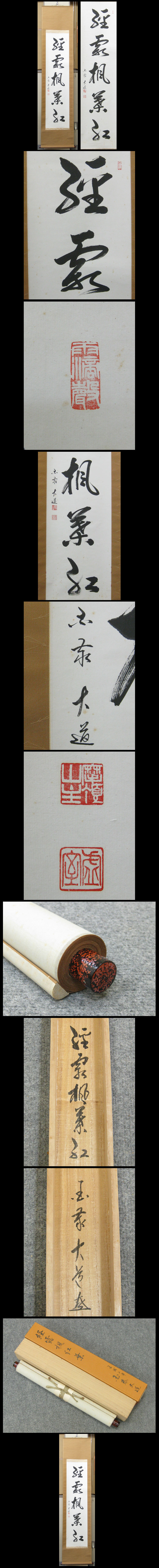 【澤大道】 昭和22年~ (1947- ) 道号・大道、法諱・宗弘、俗姓・澤。 臨済宗国泰寺派第8代管長・僧堂師家。 「経露楓葉紅」 霜を経て楓の葉はいっそう鮮やかに紅葉する。人も苦しい時期を経て大成するという意味。 ★商品サイズ★ ■掛軸 203×46cm ■作品 135×33.5cm ★商品の状態★ 作品に時代のしみ汚れがあります。 ご承知のうえご入札をお願いします。 時代など詳しくは画像にてよく確認のうえでご検討いただければと思います。 どうぞよろしくお願いいたします。 |