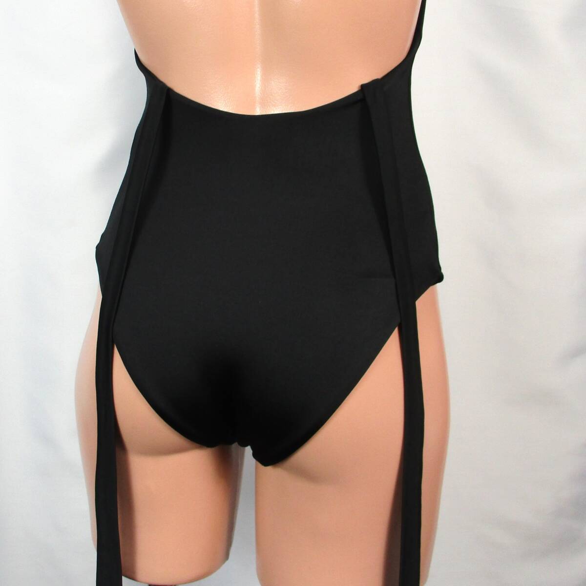 E9208★リボン かわいい 水着 ワンピース レディース ハイレグ 無地 黒 ブラック シンプル 女子 水泳 プール ビーチ 海