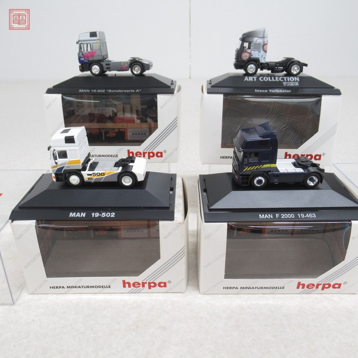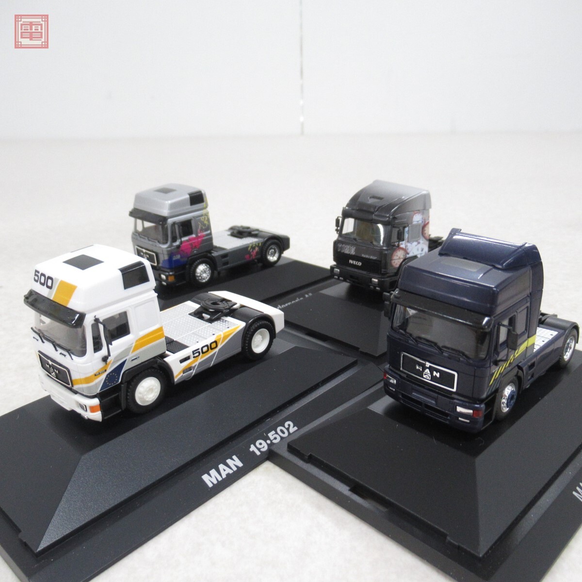 ヘルパ 1/87 トレーラーヘッド イヴェコ ターボスター Time/MAN F2000 19.463/19.502 Sanderserie A 等 計4台セット herpa IVECO ■外箱にスレ、汚れがあります。 ■ケースにスレ、汚れがあります。 ■ボディにスレがあります。 ■台座に固定されている為、外さずに行える範囲でのチェックを行っています。 ■写真のものが全てです。付属物の有無や状態については写真からご判断ください。 ■付属物については細かいチェックはしておりませんので、万が一、欠品があったり余計な物が入っていたとしてもご了承ください。 ■商品到着後、当店の保証期間中は、商品及び箱や取説、付属品などを1つでも廃棄や破損をしないようにお願い致します。廃棄や破損をした場合、商品に問題があった場合でも対応や返金などの対処ができなくなります。 ■商品によりますが、発売されてから10年以上経過している中古品である事をご理解頂いた上でご入札をお願い致します。なお、新品や美品、また特記事項がある場合は別途明記します。 | |||