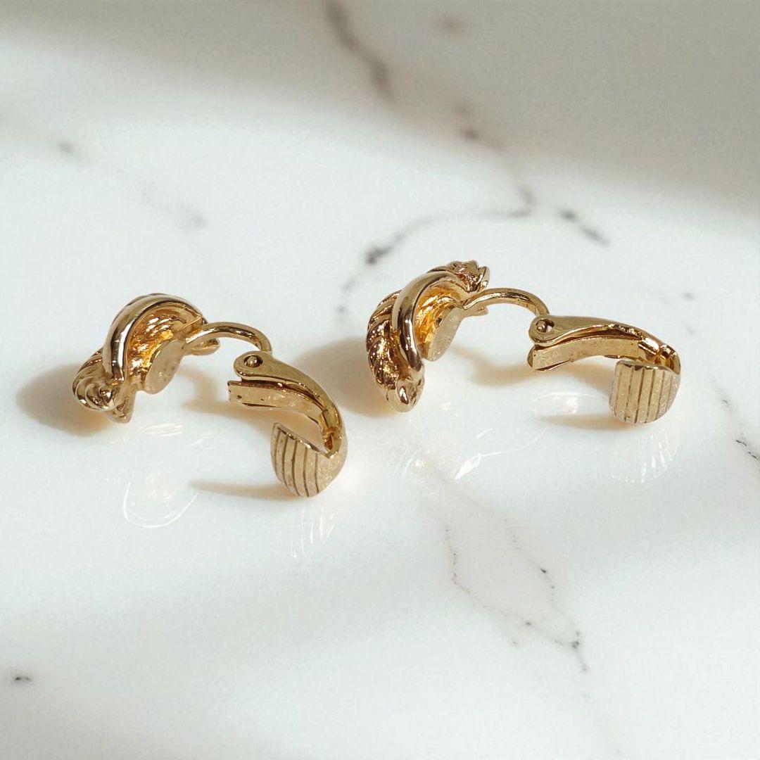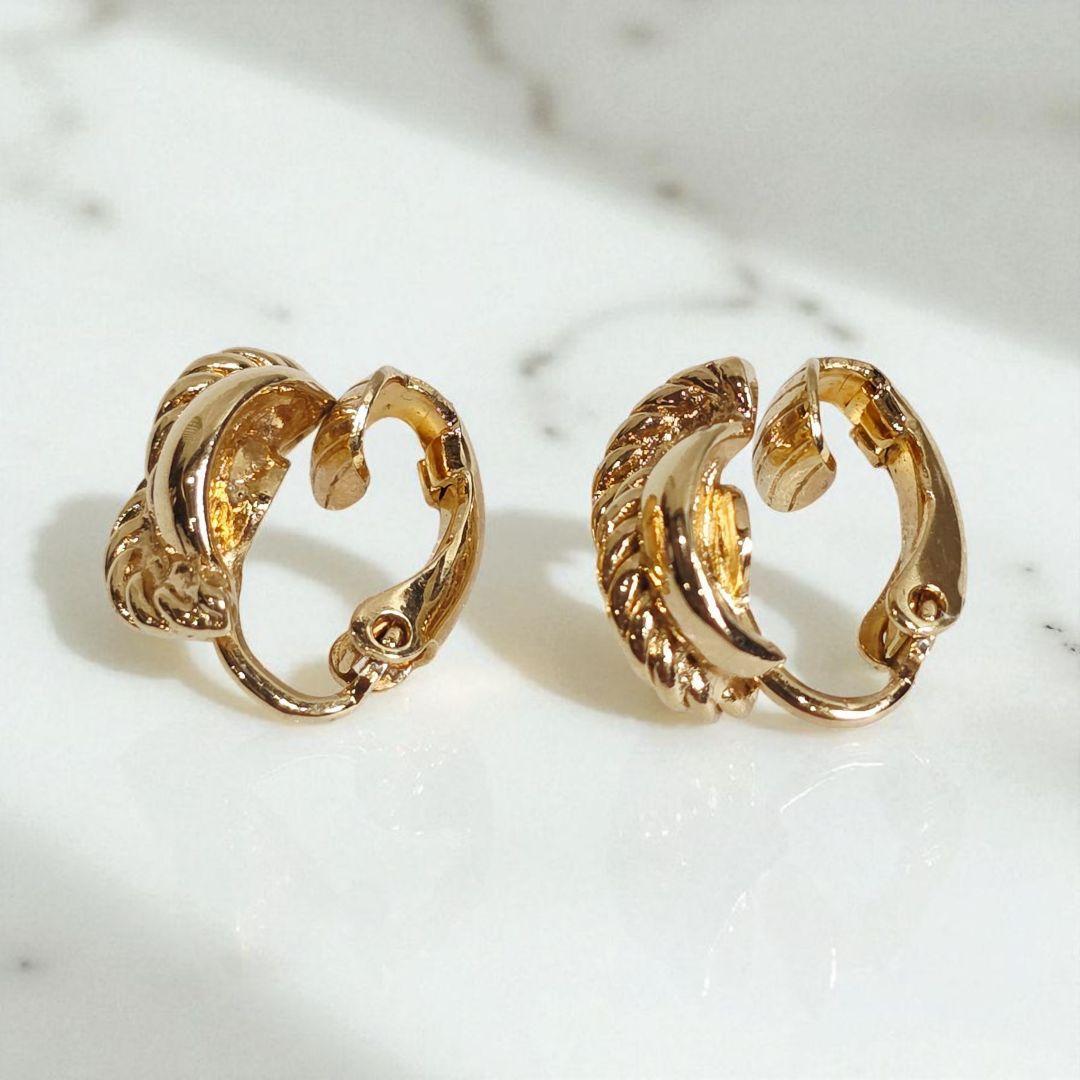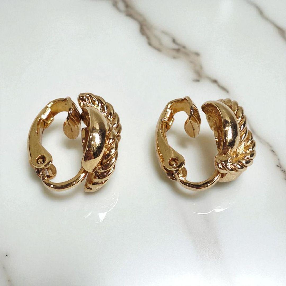 Christian Diorのヴィンテージイヤリングです。ツイストロープ風の立体感あるデザインが耳元を華やかに演出し、シンプルながら存在感のあるアイテム。フォーマルからカジュアルまで幅広く合わせやすく、長く愛用いただけます。