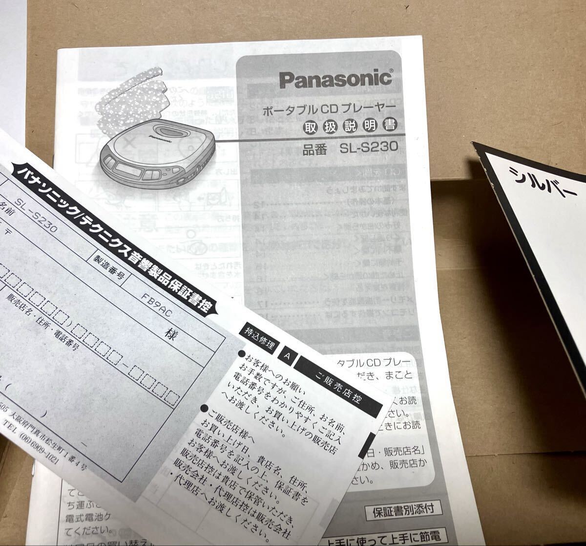 ご覧いただきありがとうございます。パナソニックのポータブルCDプレーヤー、SL-S230-Sです。