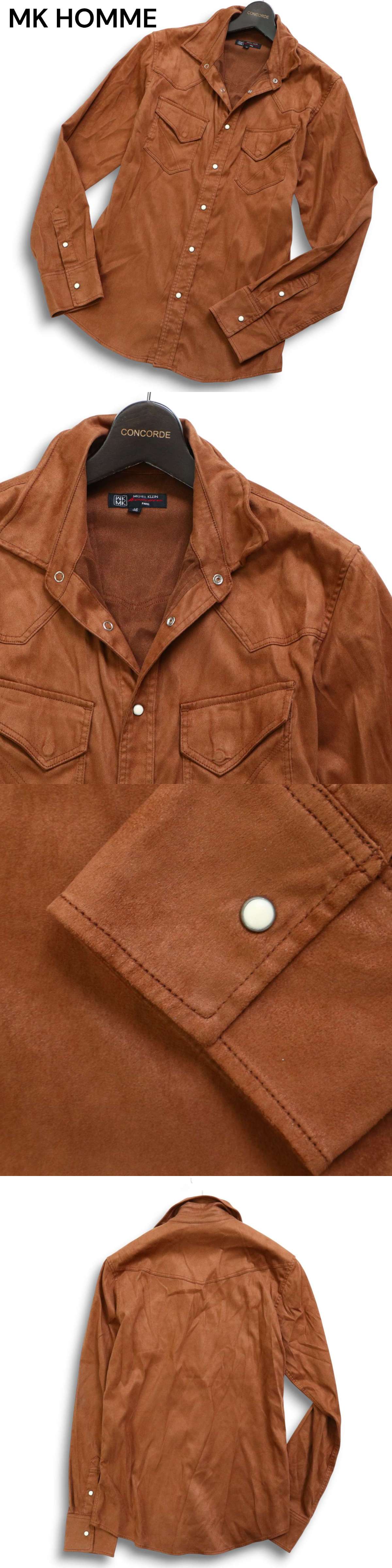 MK HOMME ミッシェルクラン オム 秋冬 フェイク スウェード レザー★ 襟ワイヤー 長袖 ウエスタン シャツ Sz.46 メンズ