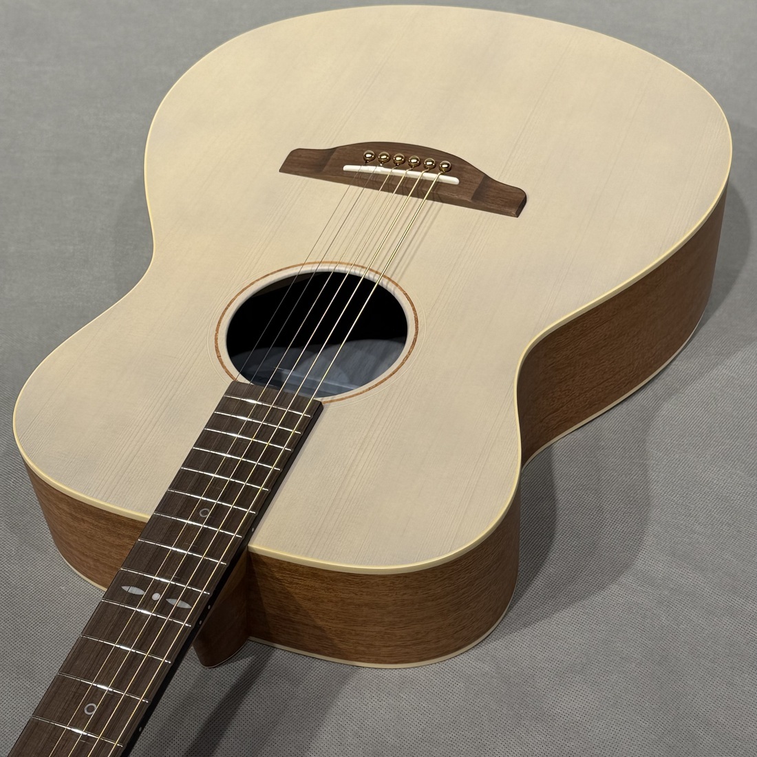 表板にはスプルース単板、側裏板にはマホガニーを採用