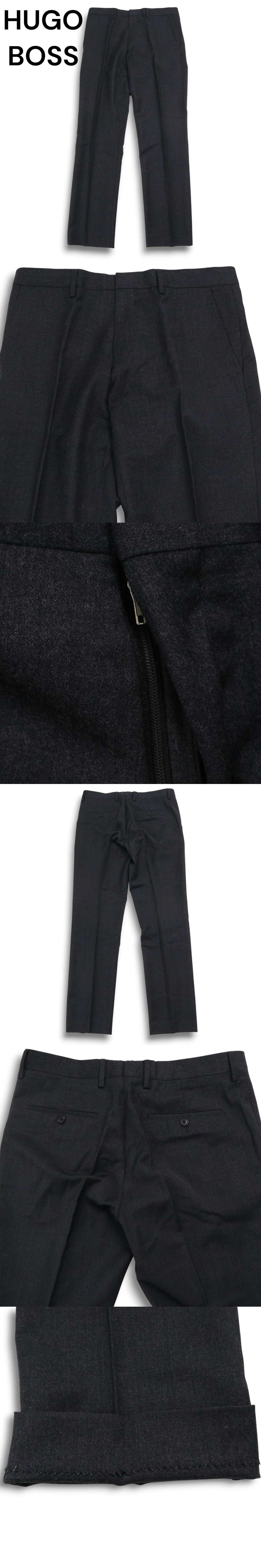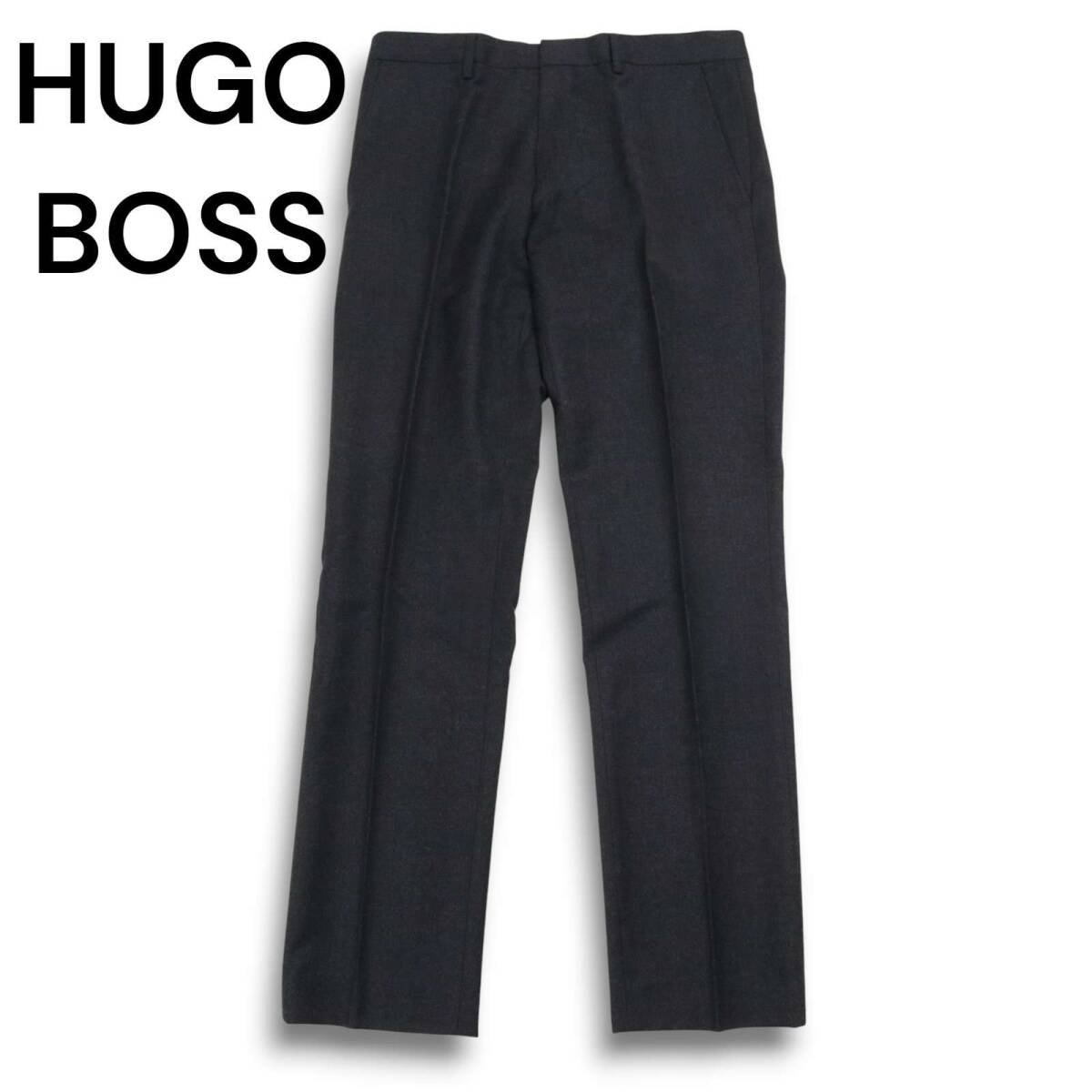 HUGO BOSS ヒューゴボス 秋冬 ウール100%★ ストレート スラックス パンツ Sz.48 メンズ 灰 グレー