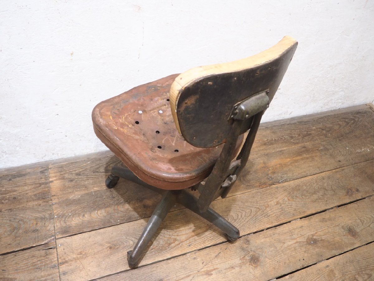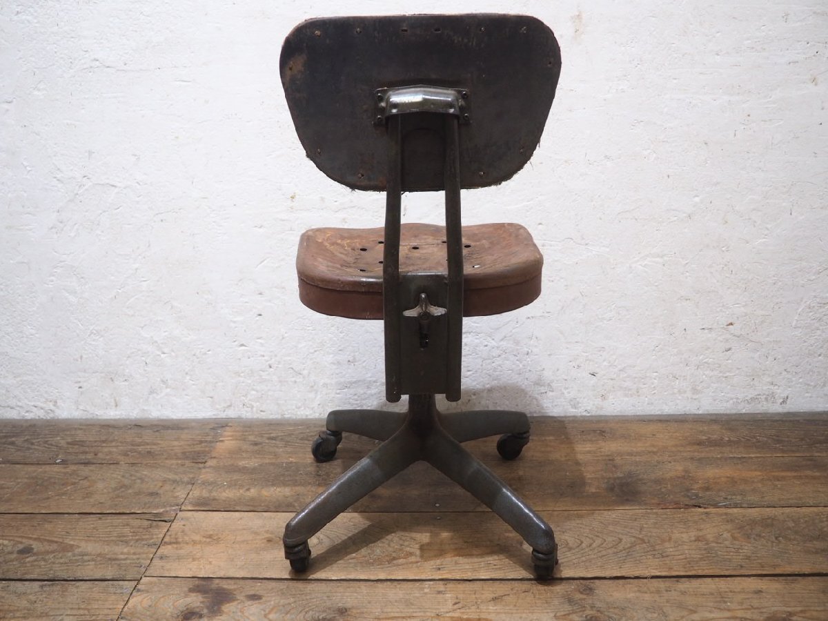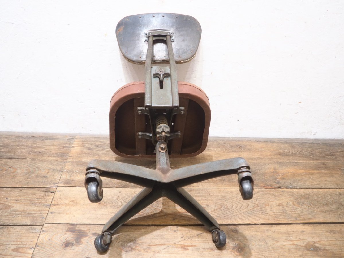 タW1999◆ヴィンテージ◆キャスター付き◆レトロな古い鉄脚チェア◆当時物 工業系 イス 回転椅子 インダストリアルJ笹4