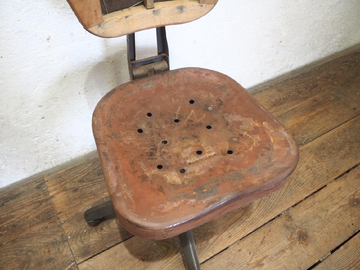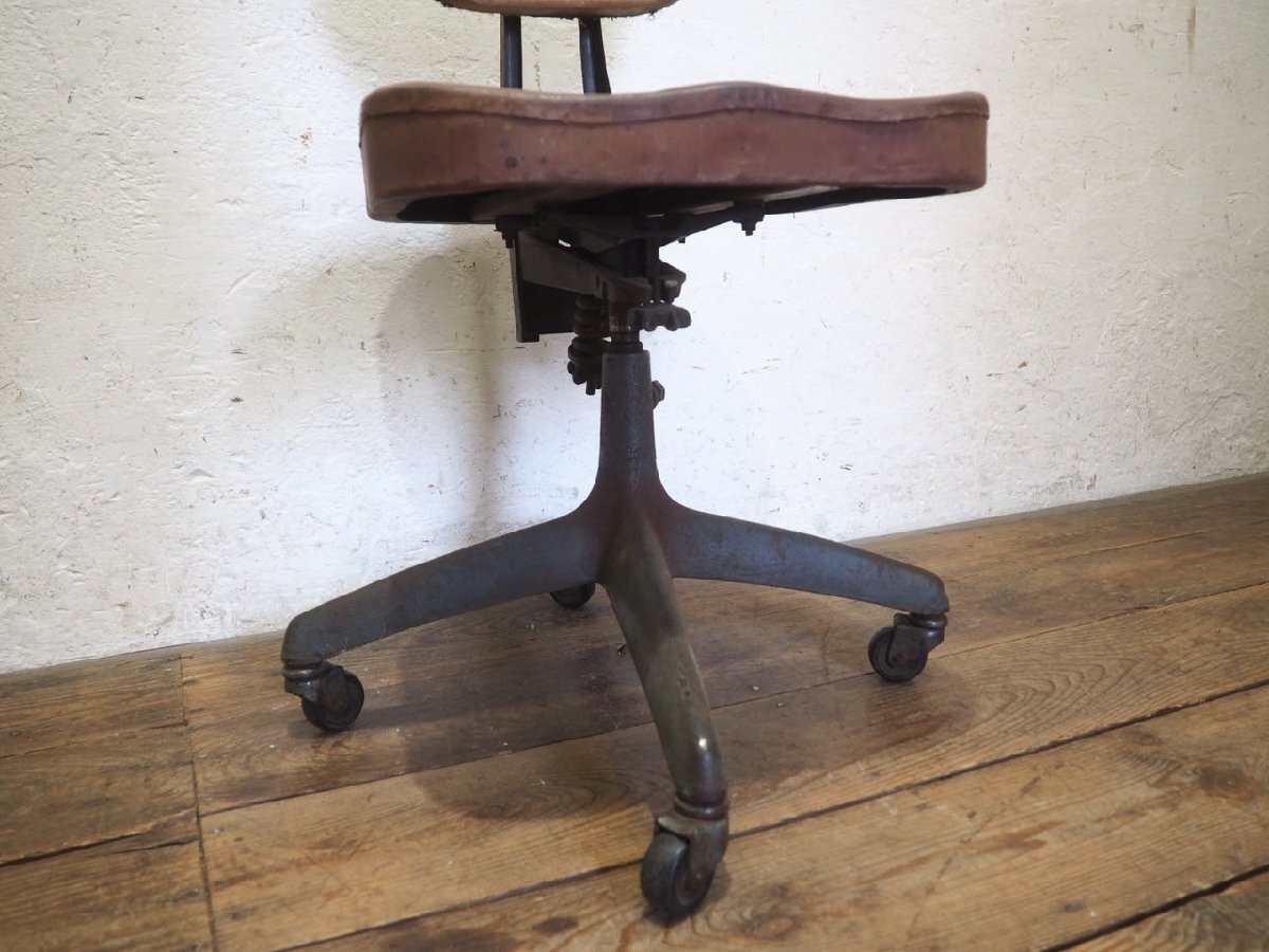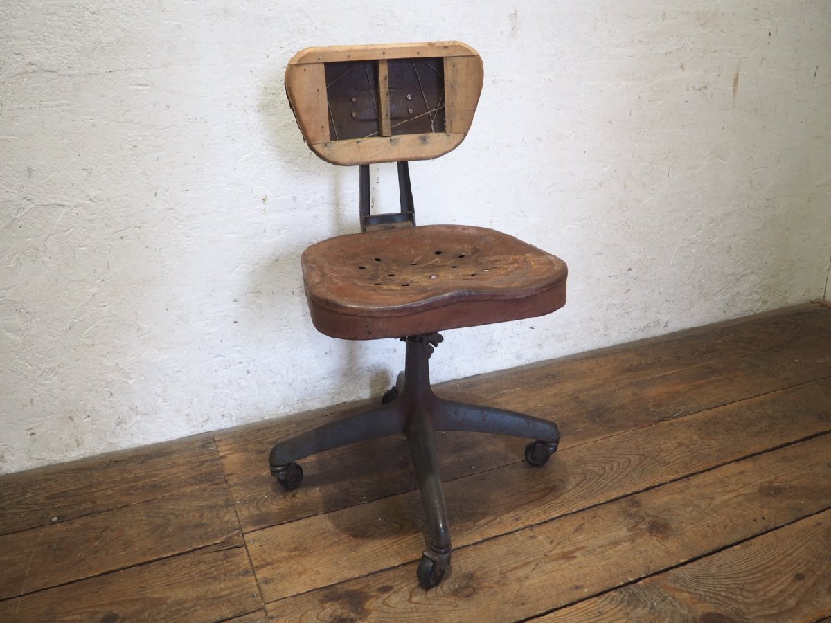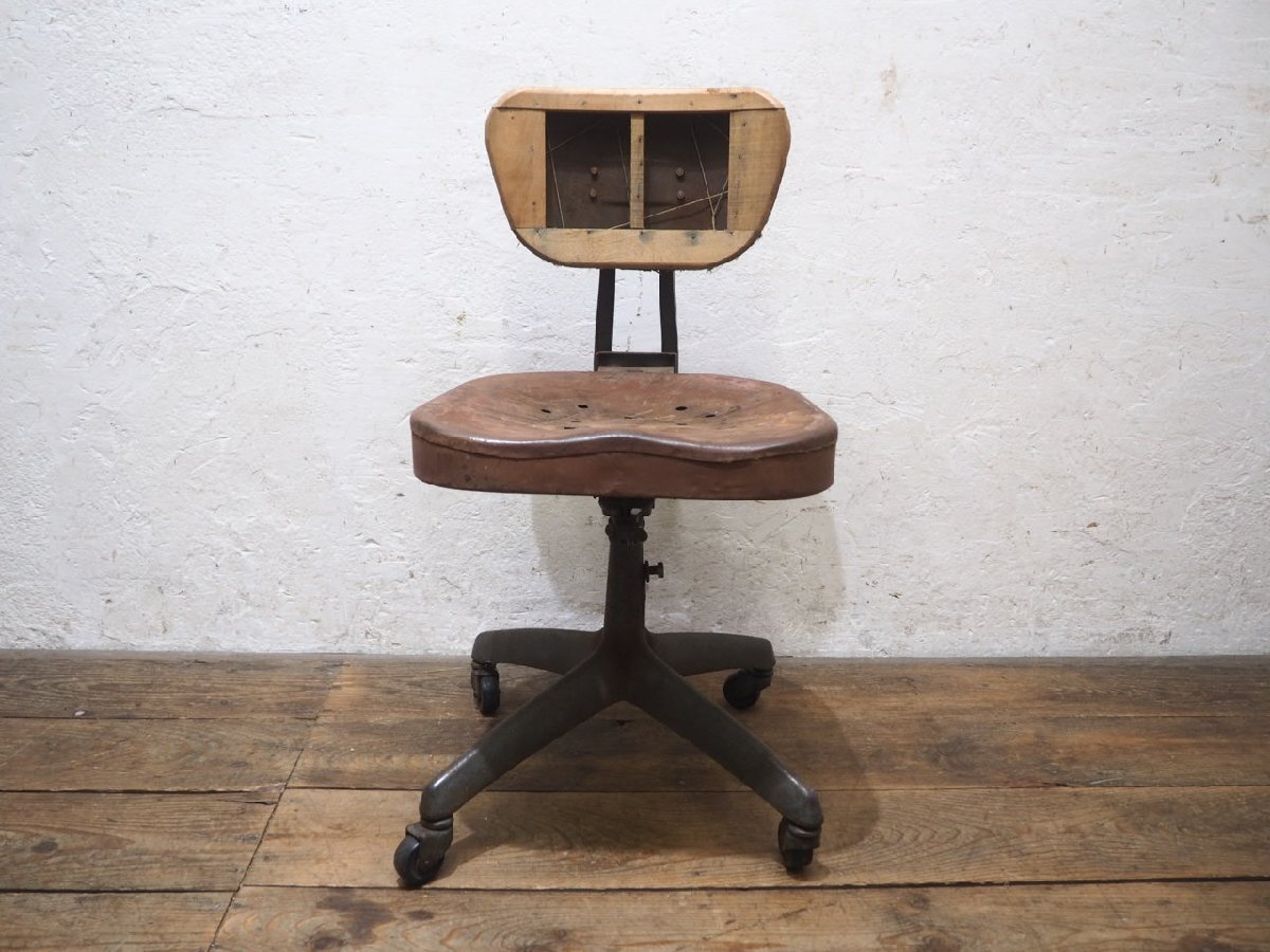 タW1999◆ヴィンテージ◆キャスター付き◆レトロな古い鉄脚チェア◆当時物 工業系 イス 回転椅子 インダストリアルJ笹4