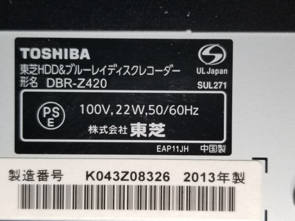 ●東芝のREGZA_DBR-Z420の難有り動作品、HDDは稼働時間が7350時間と少なく、寿命の心配はいりません(この機種のHDD寿命は7万時間~10万時間です)