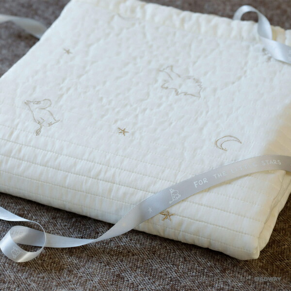 商品説明 | 掛けたり、敷いたり、多用途で使えるキルトケット、ホワイト生地にシャンパンゴールド刺繍でムーミンを表現。ムーミンベビーオリジナルのリボン掛けPKGでギフトにもぴったり。■洗濯機で洗えます。■洗濯の際は色移りすることがありますので、単独で洗ってください。■蛍光増白剤を含んだ洗剤は使用しないでください。【サイズ:約100×130cm】 |