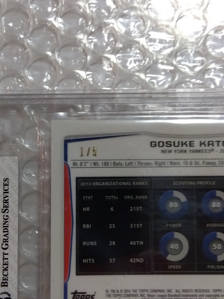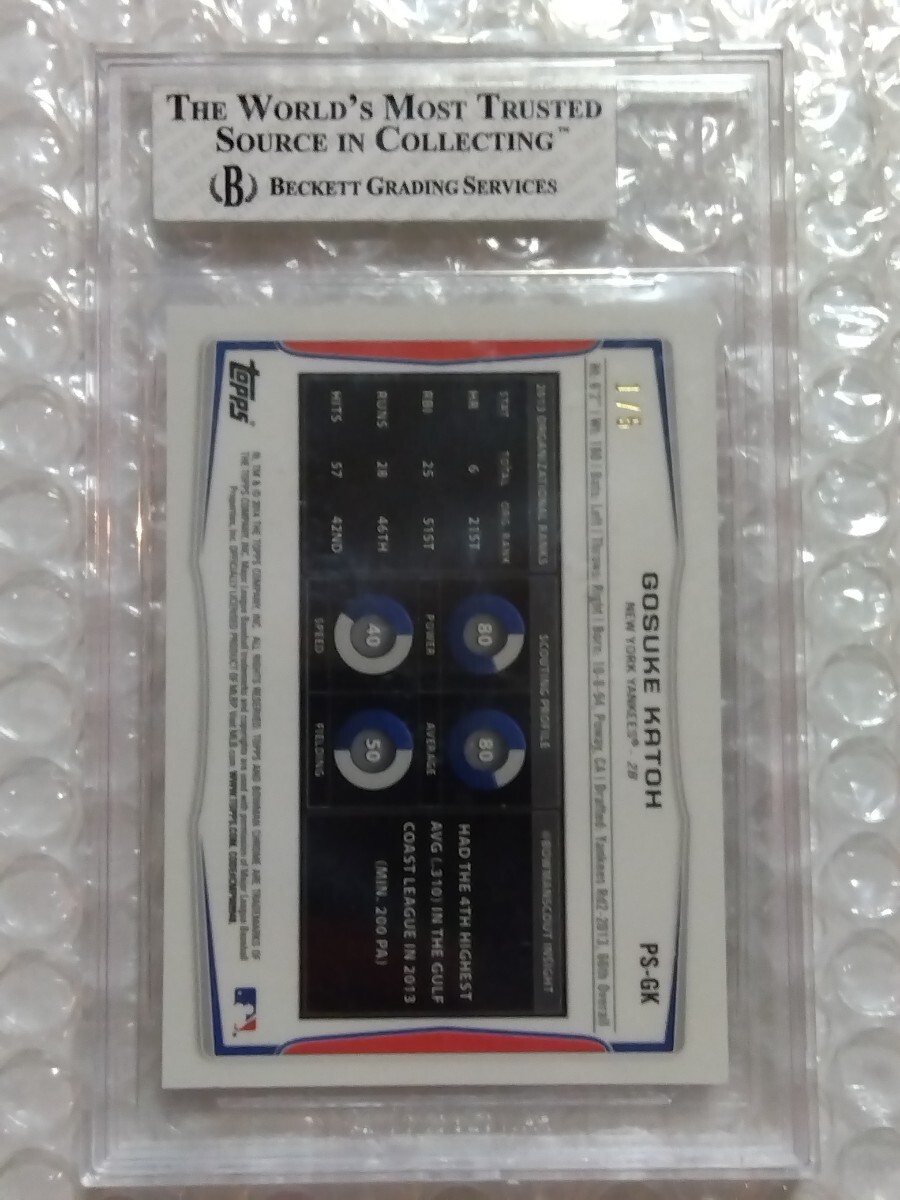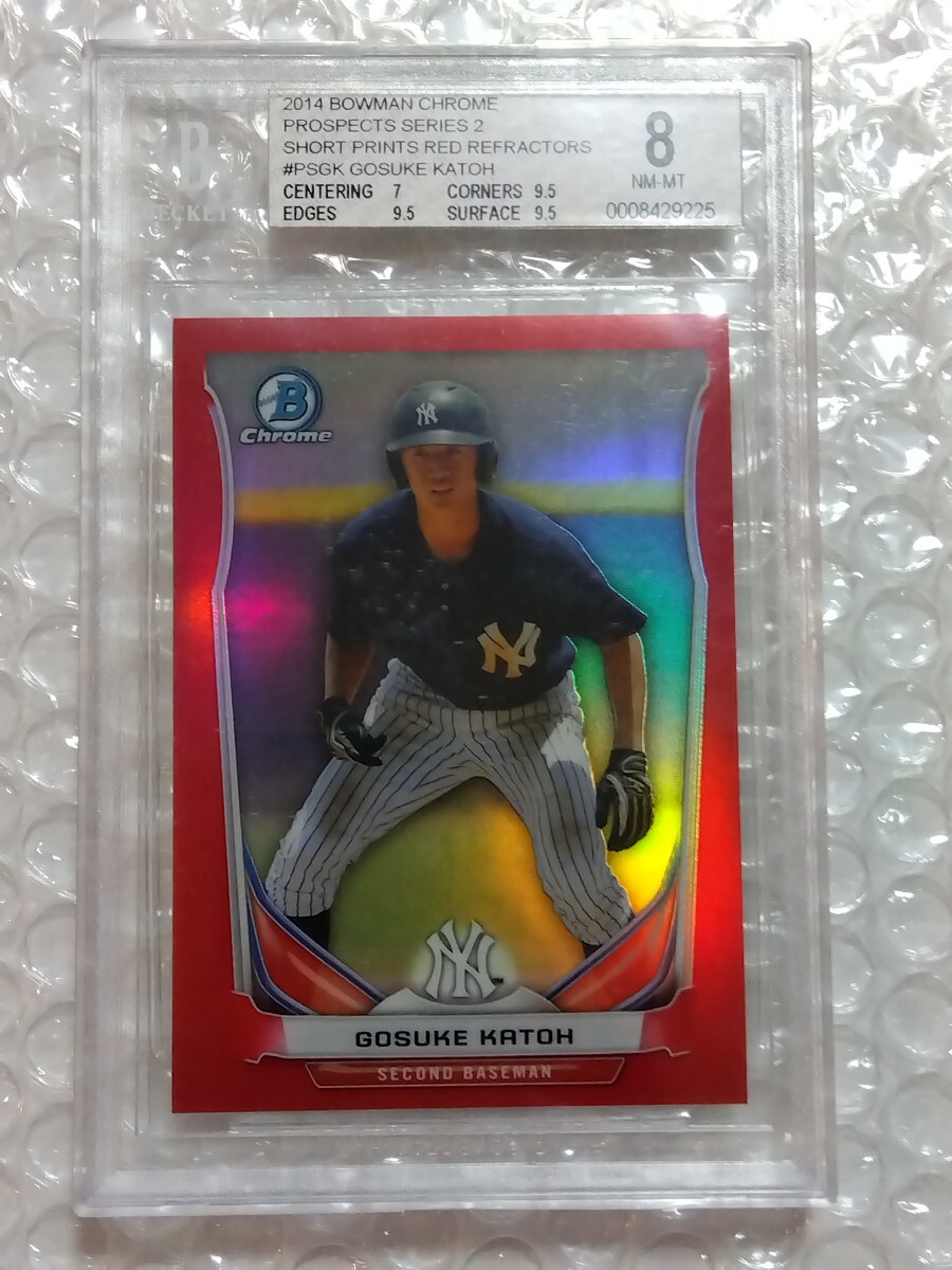 BGS(Beckett Grading Service)鑑定でNEAR MINT(8)の評価がなされた、加藤豪将選手のボウマンカードです。