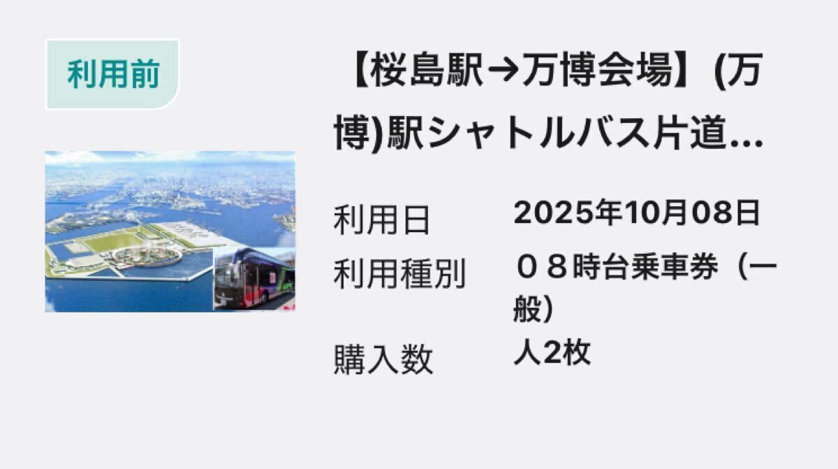 万博シャトルバス 桜島発10月8日 8時台チケットです。