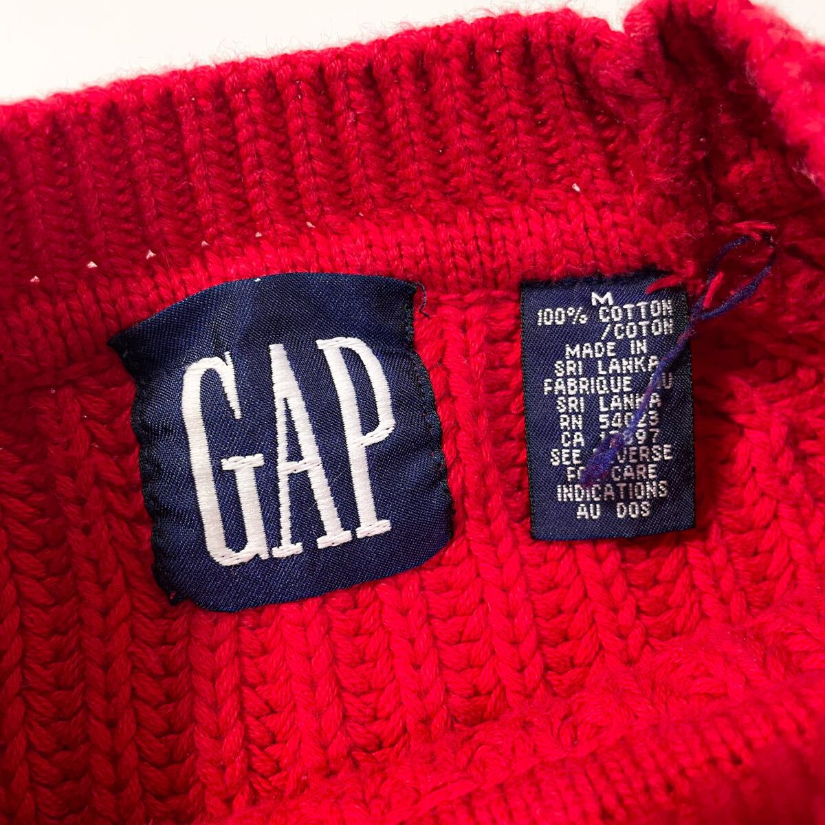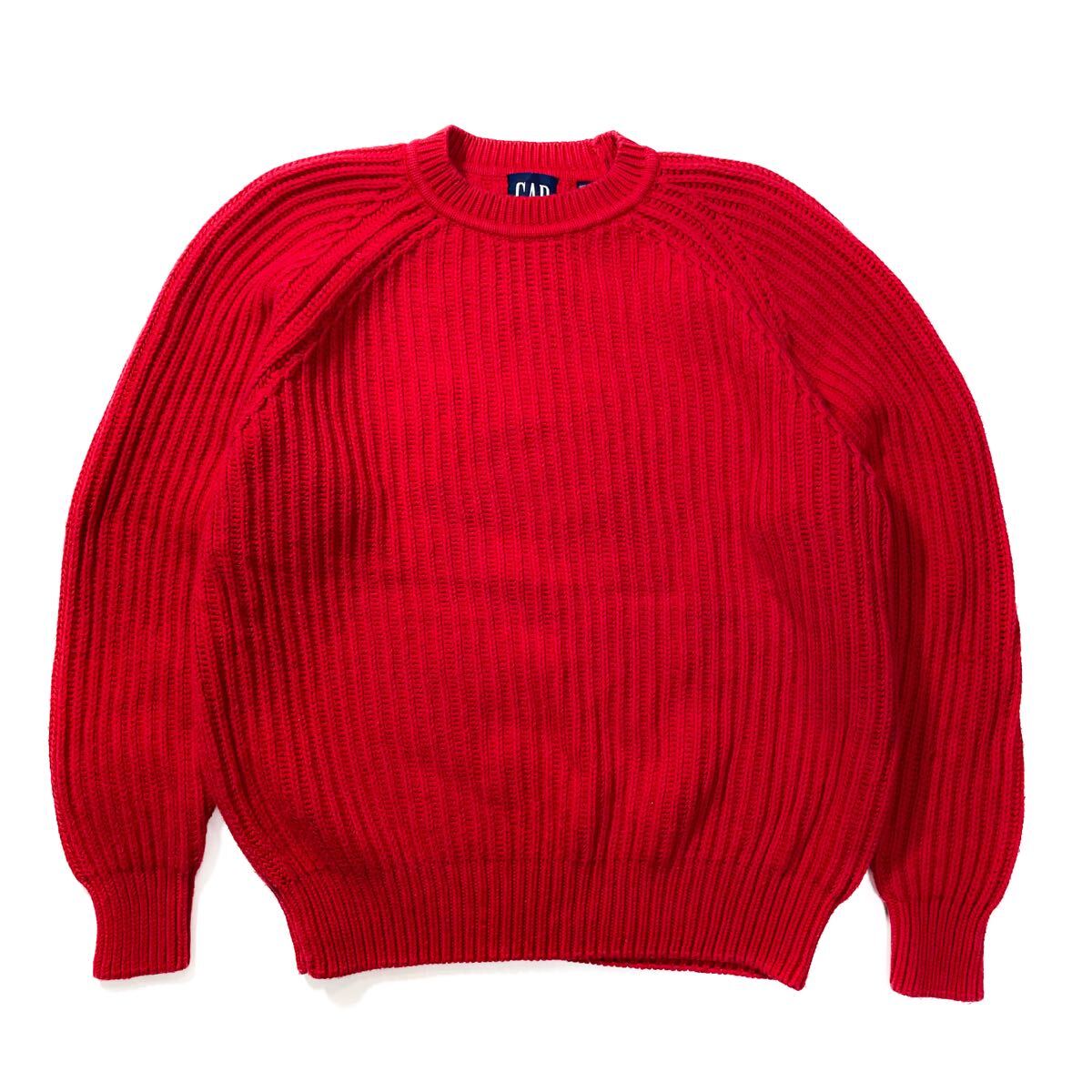 80s 90s GAP ギャップ 畦編み コットン ニット レッド 赤 ビンテージ usa old M デカタグ セーター リブ編み ラグラン 70s J.crew クルー