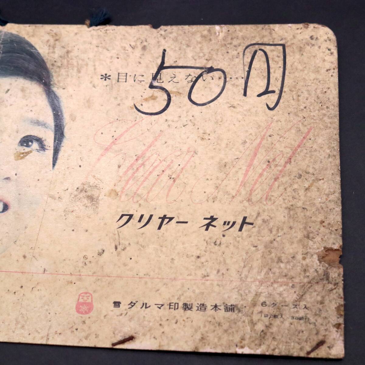 B1172 昭和レトロ クリヤーネット 雪 ダルマ印製造本舗 紙製 看板 広告 アンティーク ビンテージ コレクション 現状品