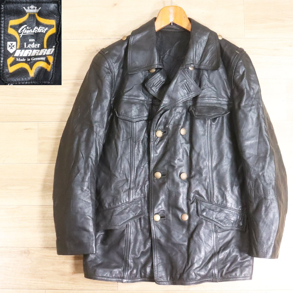 L2K/Y6.17-5 ユーロ古着 ドイツ製 HARRO ポリスマンジャケット 本革 レザーカーコート レザージャケット レザーコート