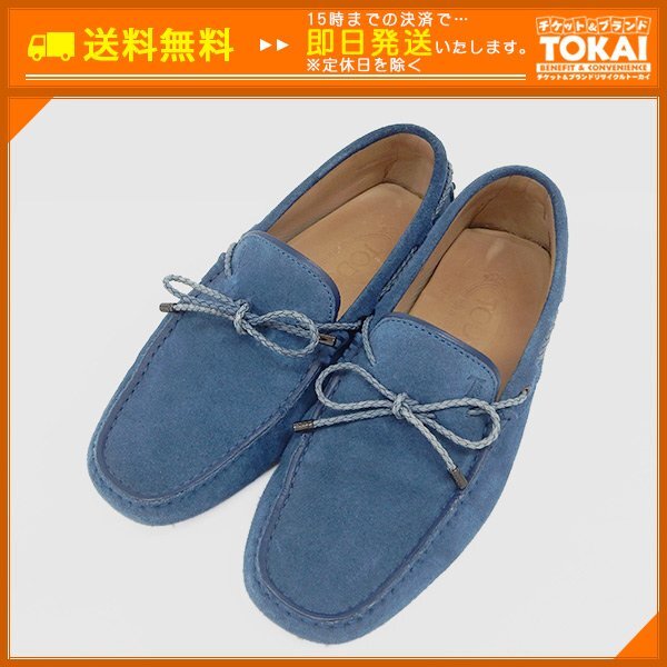 TH44 [送料無料/中古品] トッズ TOD'S スクエアトゥ スエード ドライビングシューズ 5A(24cm相当) ブルー