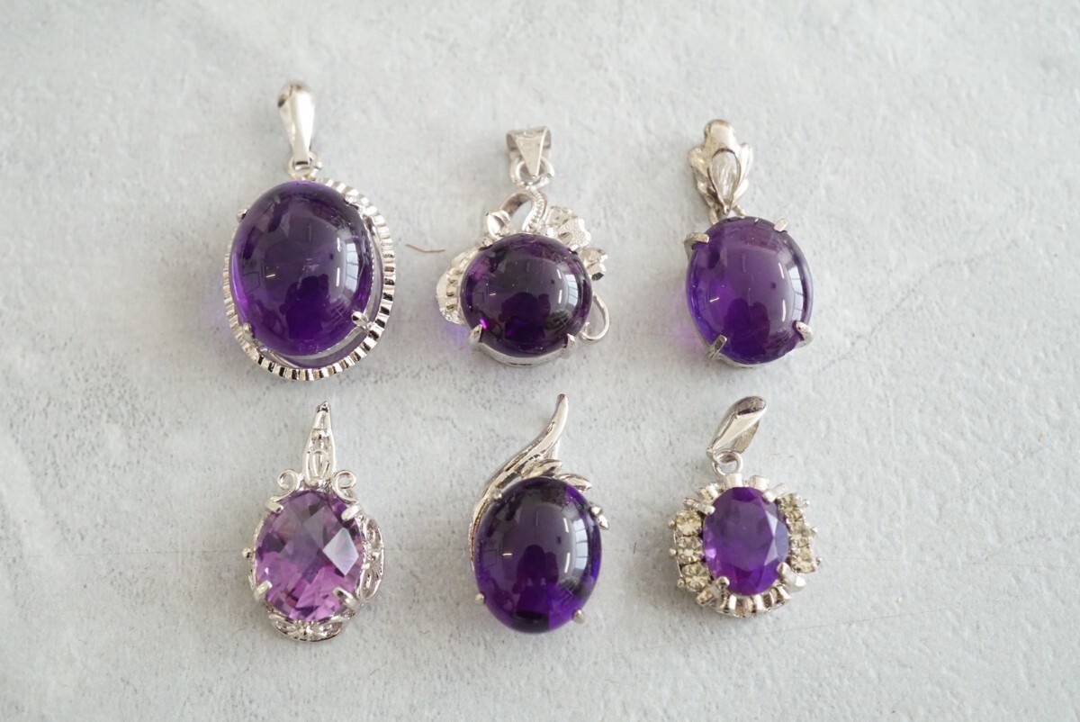 B277 アメジスト ペンダント ネックレス ヴィンテージ アクセサリー カラーストーン 大量 まとめて おまとめ まとめ売り 紫水晶