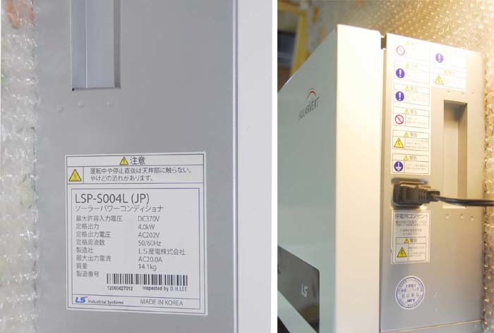 LS産電(韓国、LGグループ)のパワーコンディショナー「LSP-S004L(JP)」の自立運転テスト済の作動確認中古です。