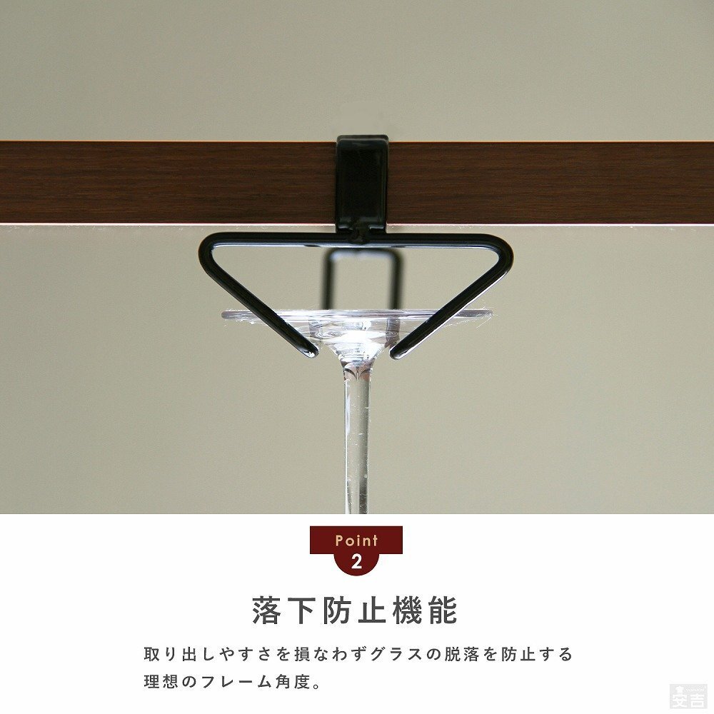 特長 | ・高さ28mmまでの棚板などに差し込む差し込み式のグラスハンガー。 ・ビスを使用しないので棚を傷つけません。 |