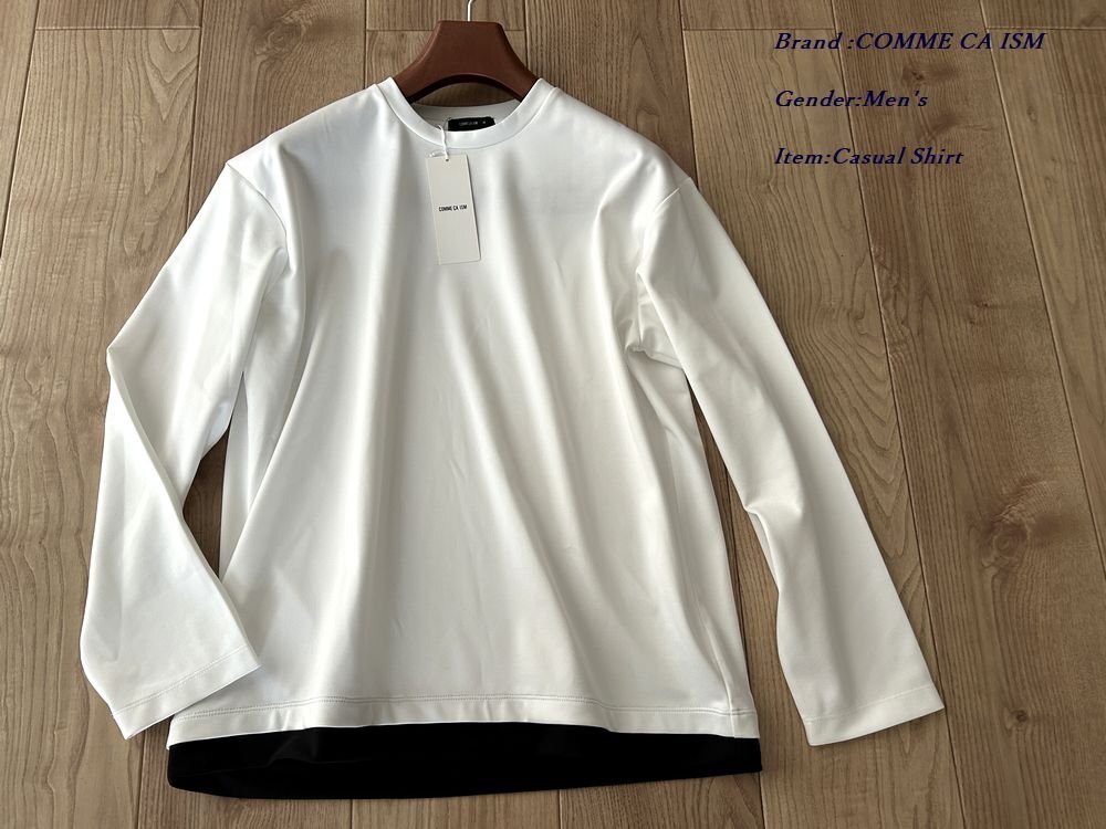 新品訳有り COMME CA ISM MEN コムサイズム ストレッチポンチ フェイクレイヤードTシャツ 01ホワイト Lサイズ 60TK02 定価3,900円