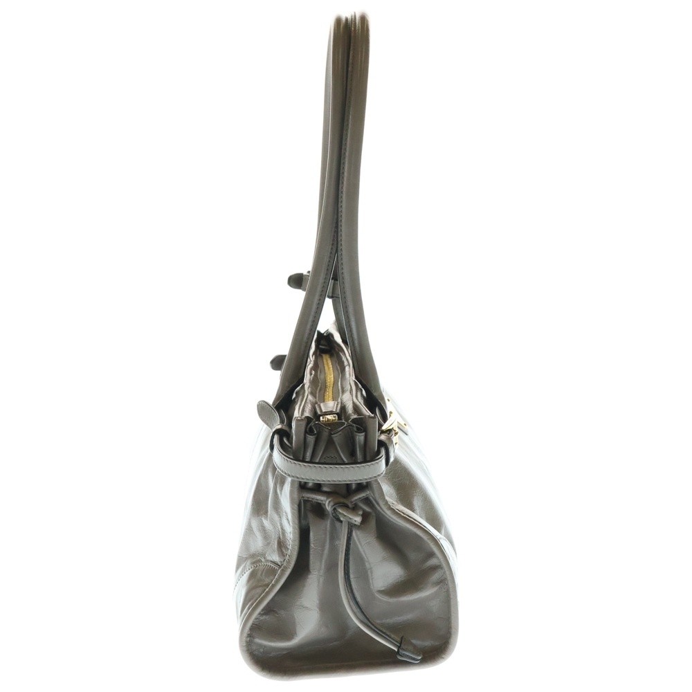PRADA プラダ ボニー トライアングルロゴプレート ハンドバッグ グレージュ ゴールド金具 レザー 1BA426