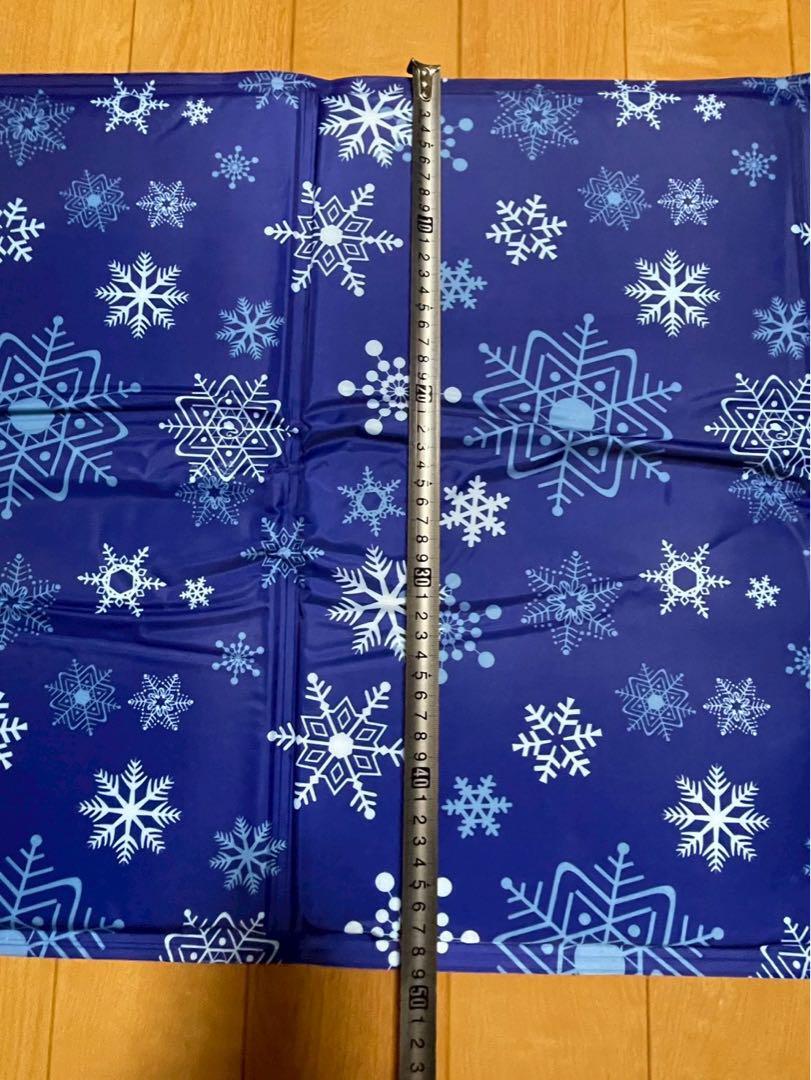 雪の結晶デザインのクールマット、サイズ約90cm x 50cmで猫に最適。