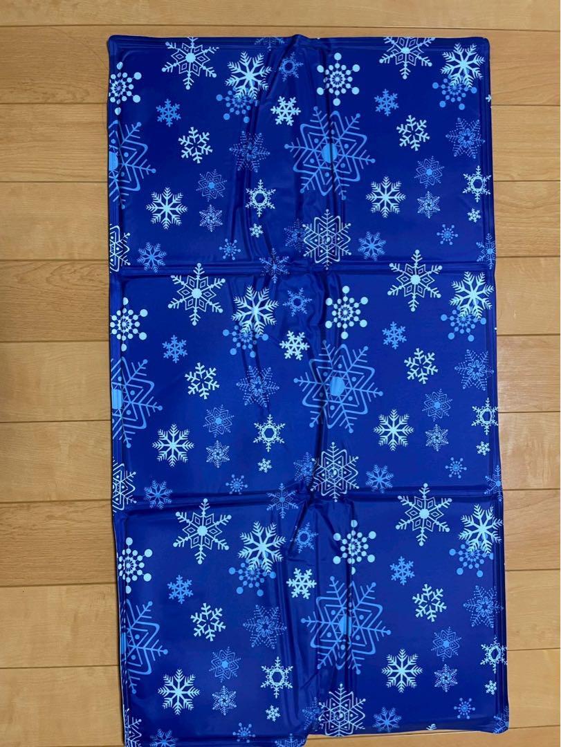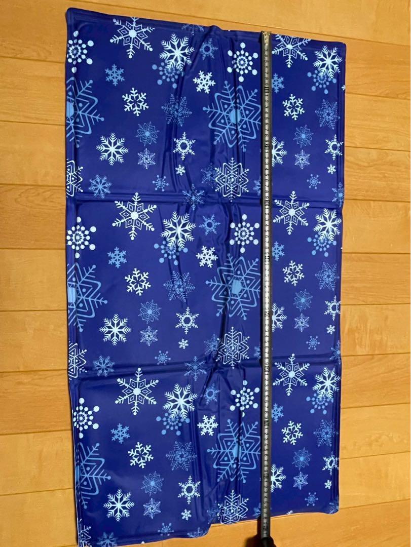 雪の結晶デザインのクールマット、サイズ約90cm x 50cmで猫に最適。