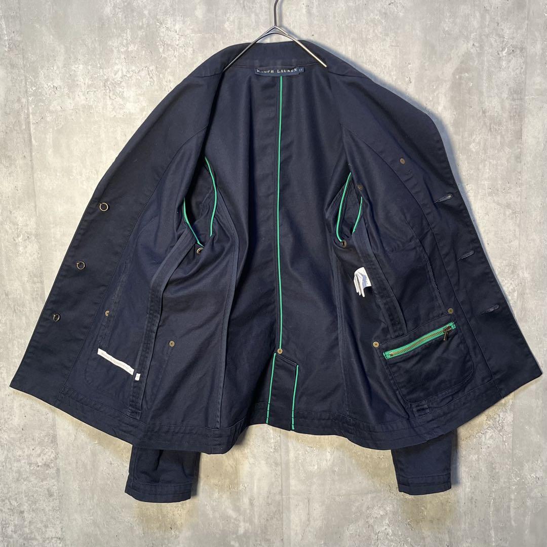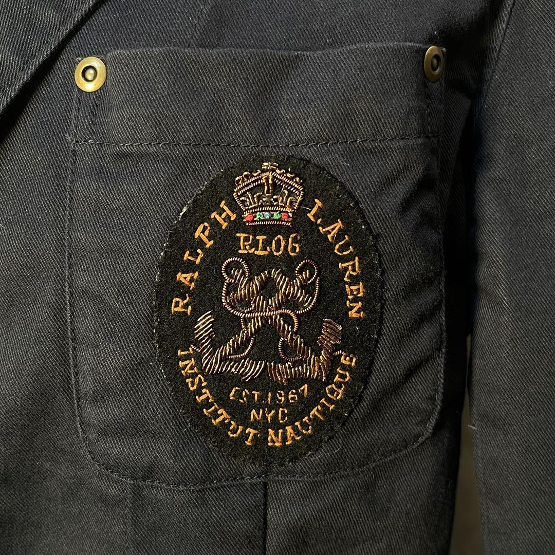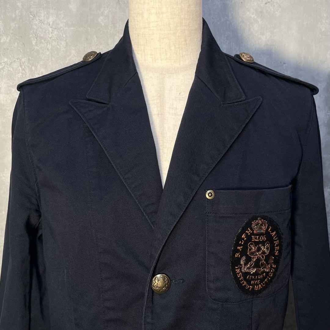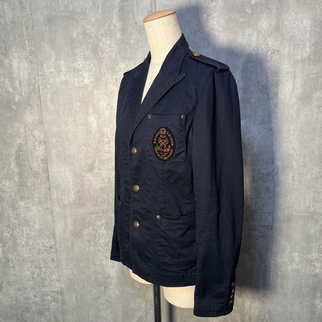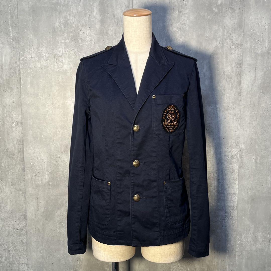 美シルエット☆ RALPH LAUREN ラルフローレン ロゴ刺繍ワッペン&肩章付き コットンテーラードジャケット