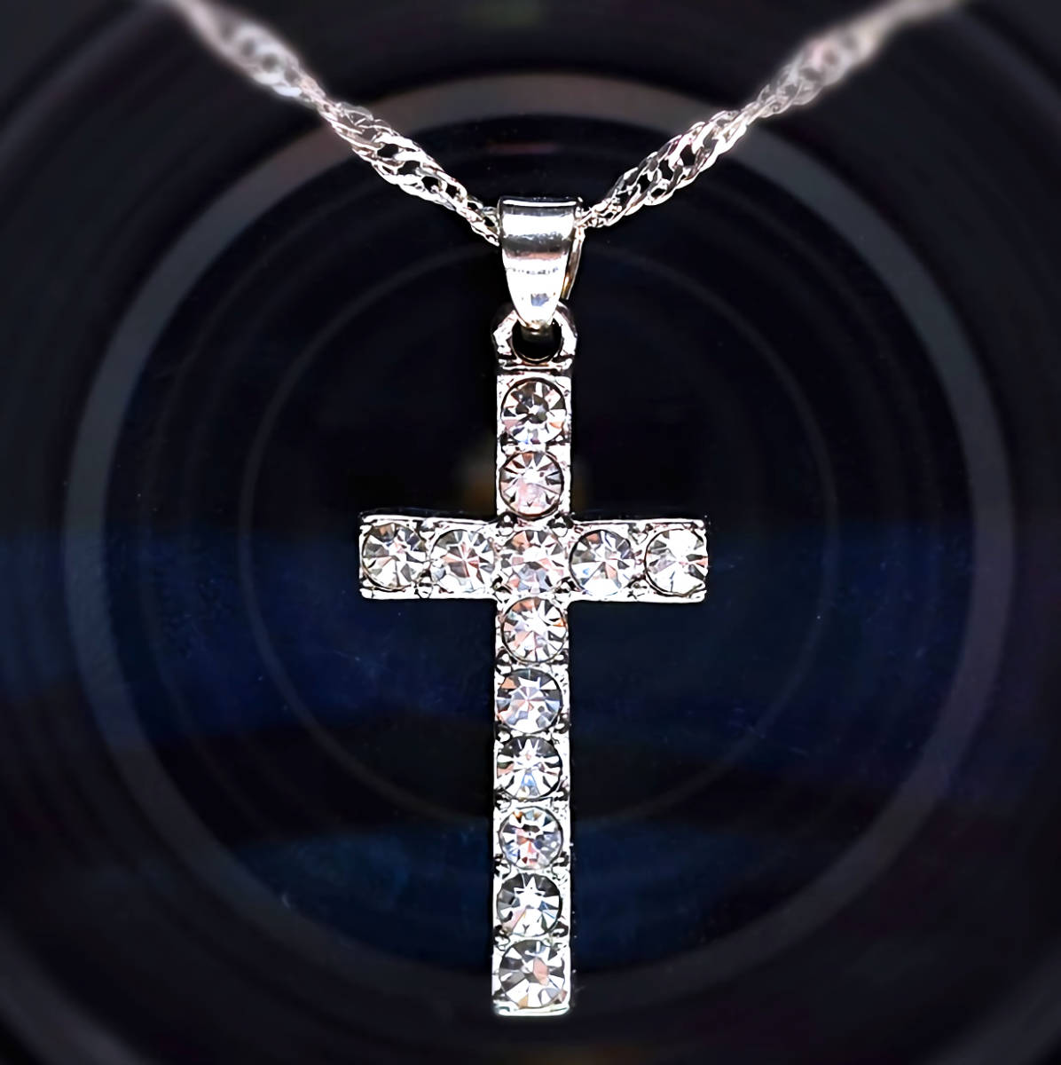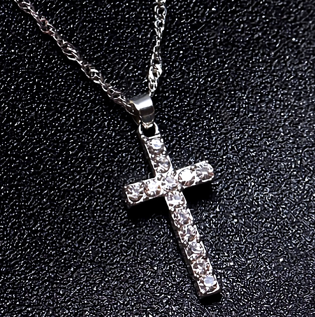 新品★送料無料★虹色ダイヤモンド輝き十字架クロス プラチナ仕上 シルバーネックレス 誕生日プレゼント旅行連休秋祭冬ギフト国内発送