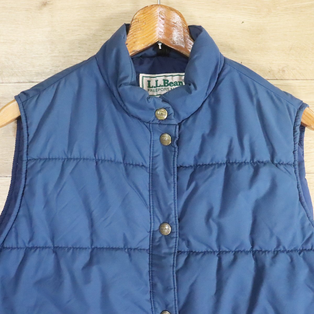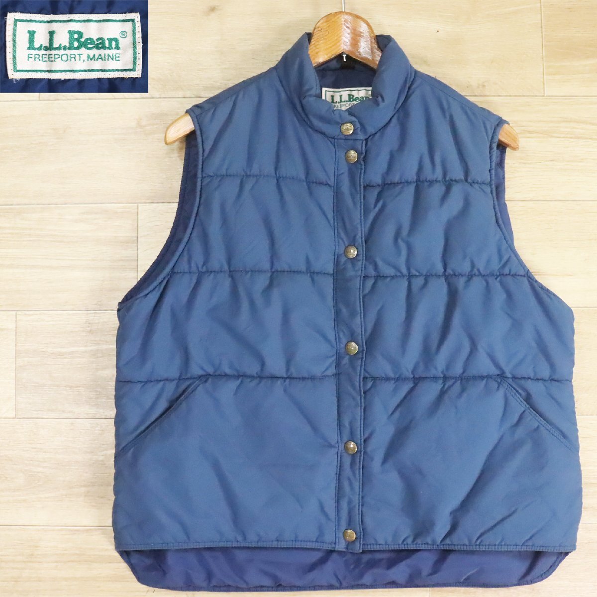 E7Y/Y8.11-3 80s~ L.L.Bean エルエルビーン パディングベスト 中綿ベスト スナップボタン アウトドア ジレ レディース ブルー系