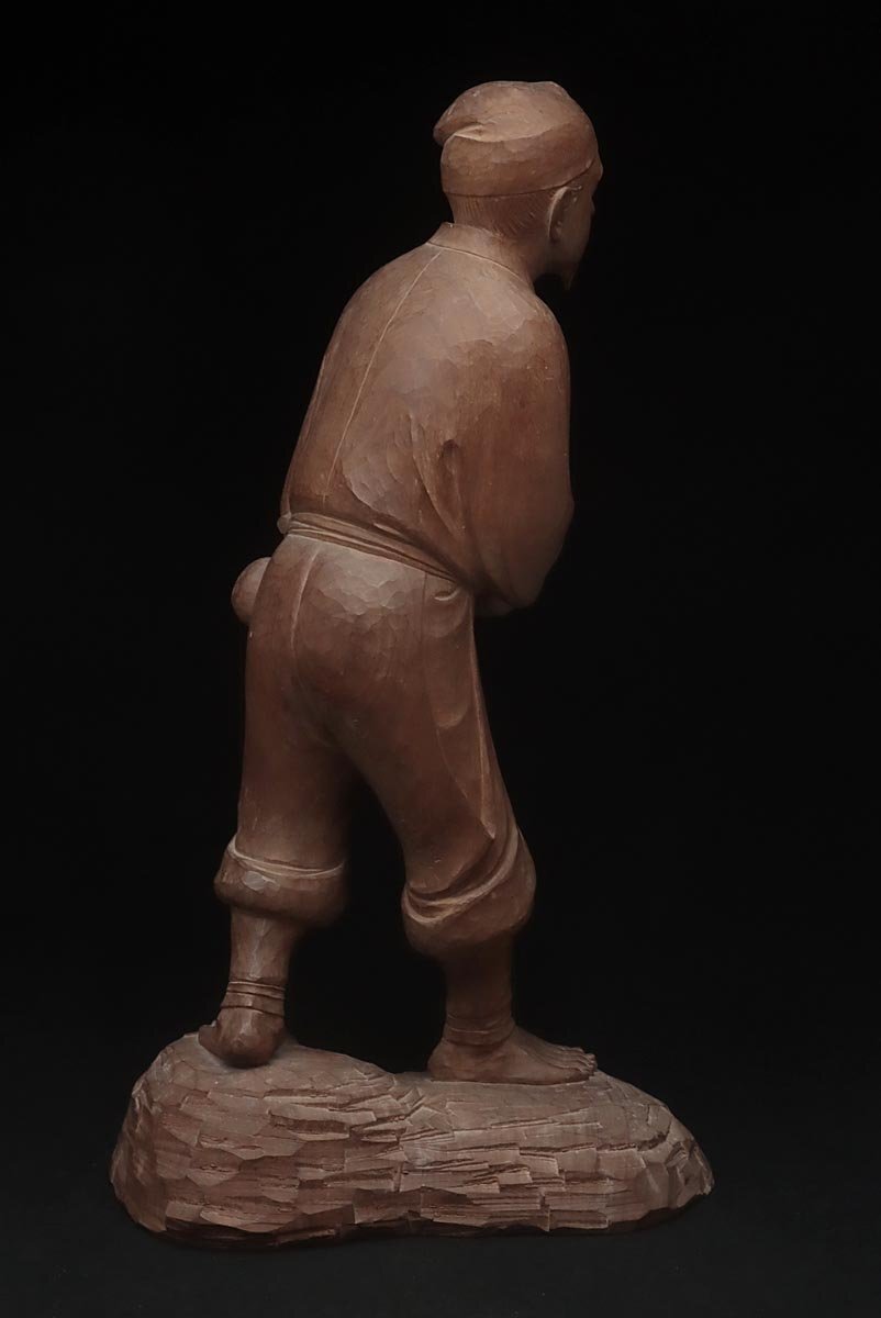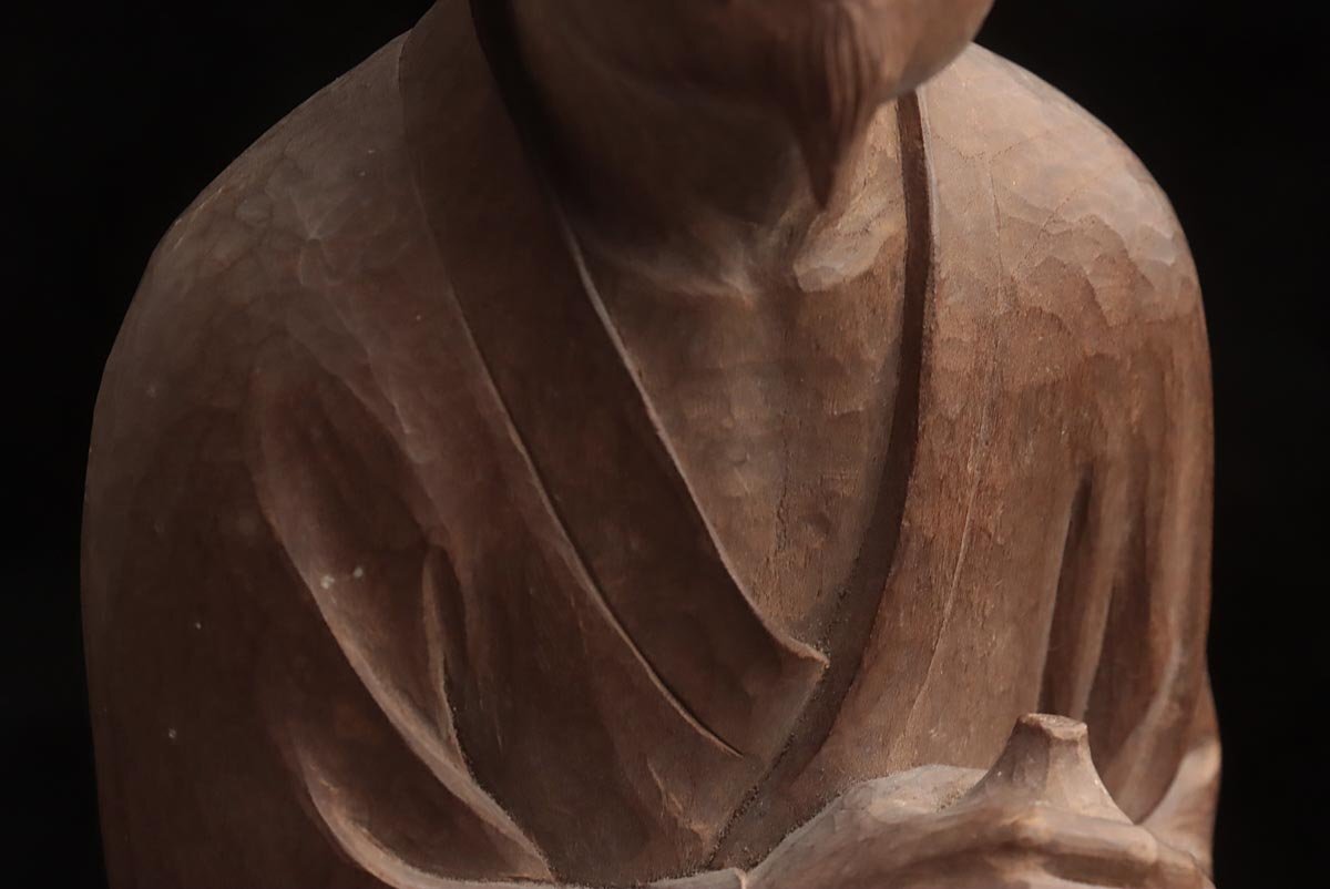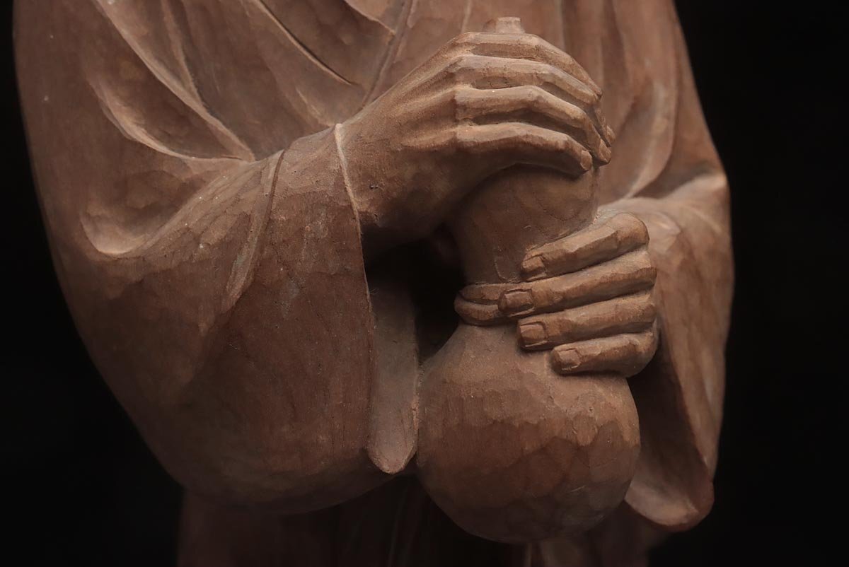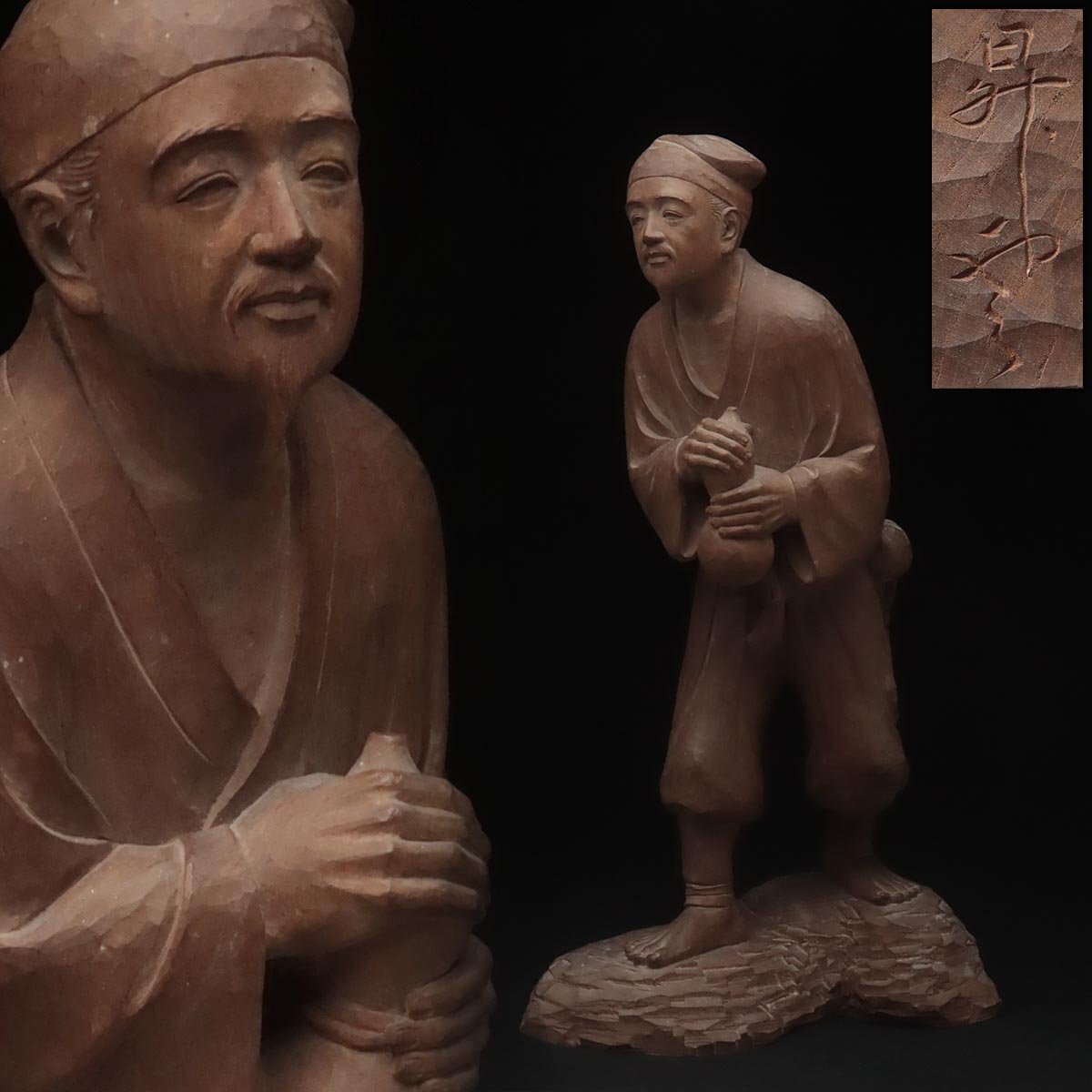 ◆ 時代【昇雲 作】一刀彫 木彫「養老」置物 高38cm・「老人/老子/人物」床置 床飾 古美術 ◆