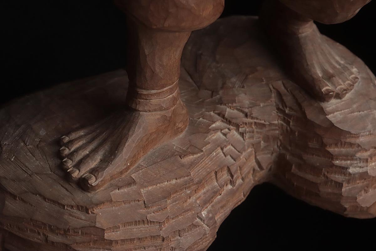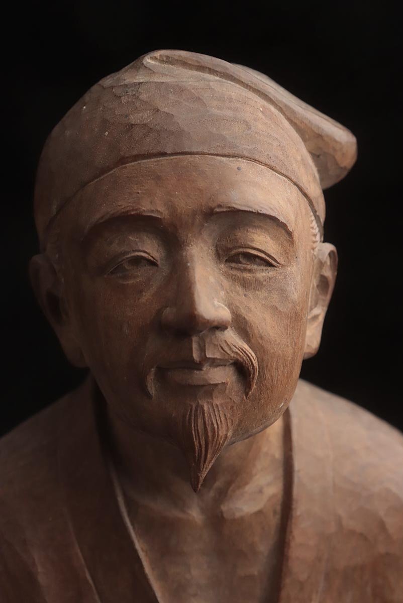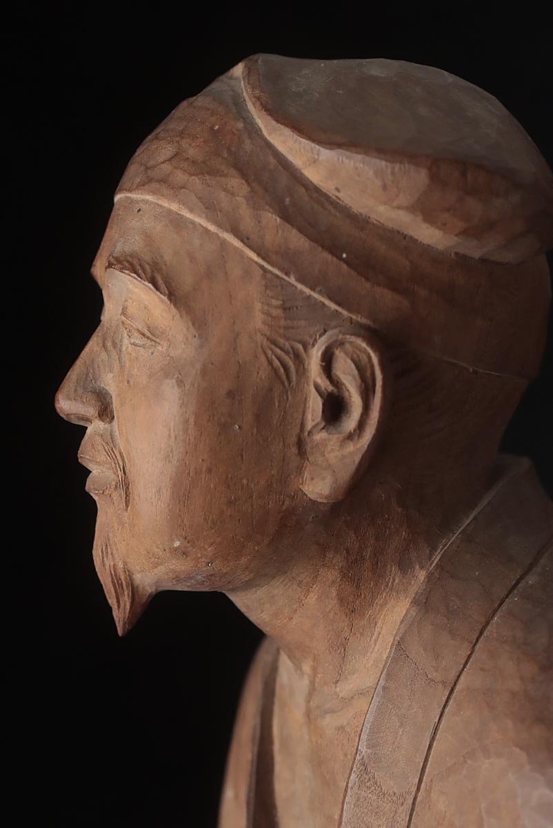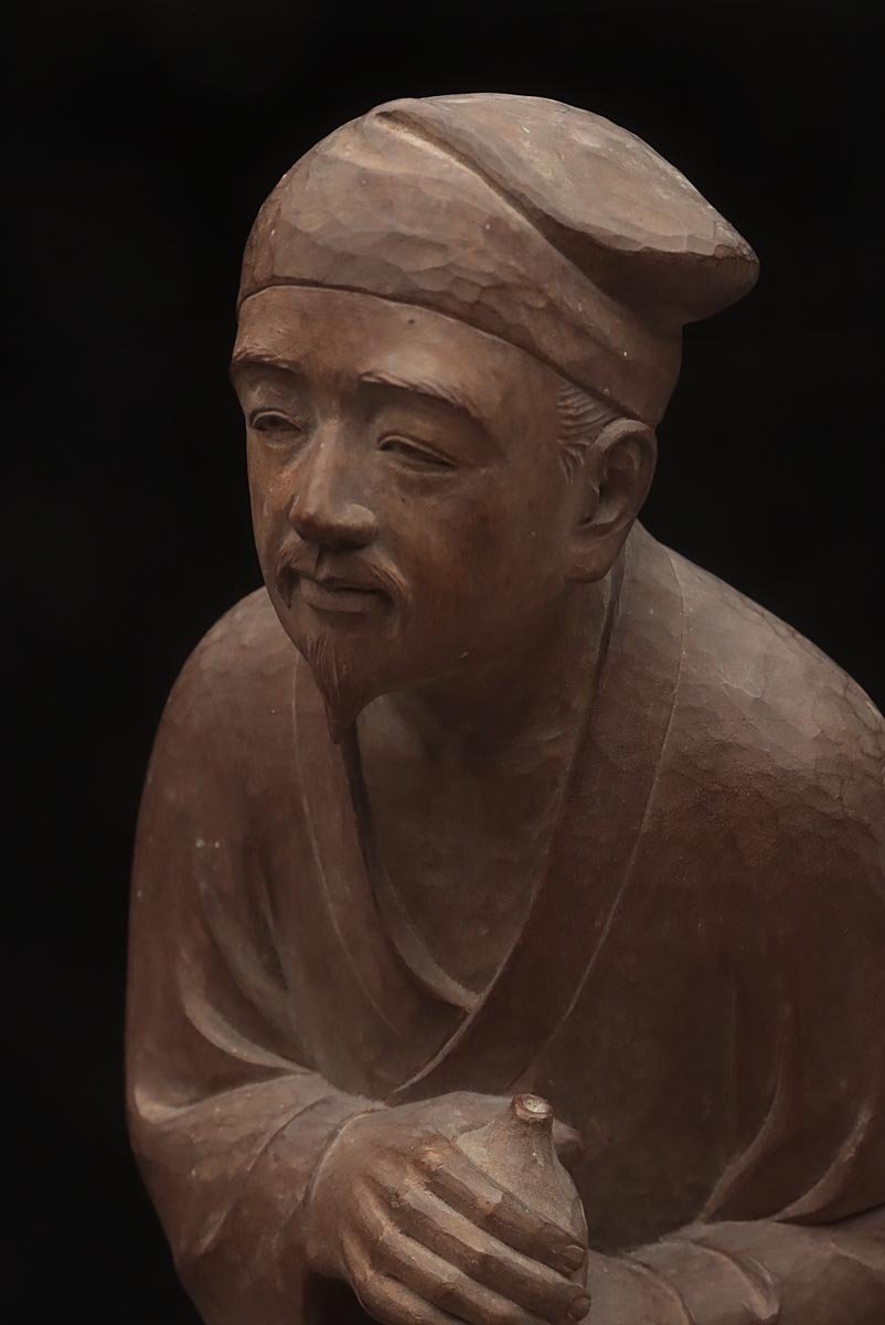 ◆ 時代【昇雲 作】一刀彫 木彫「養老」置物 高38cm・「老人/老子/人物」床置 床飾 古美術 ◆