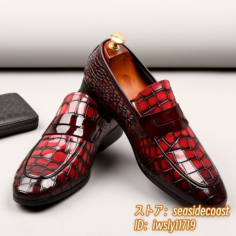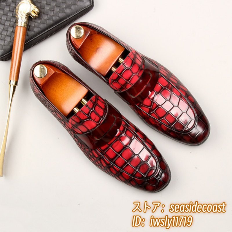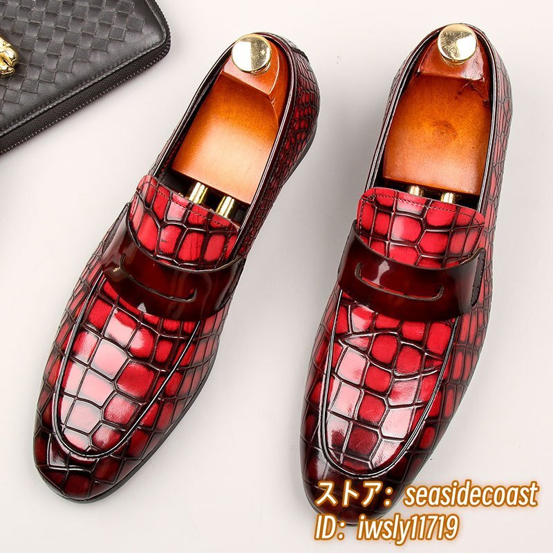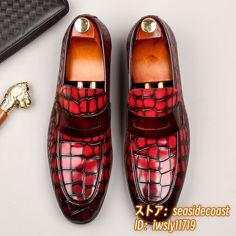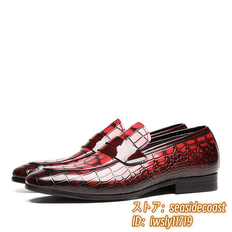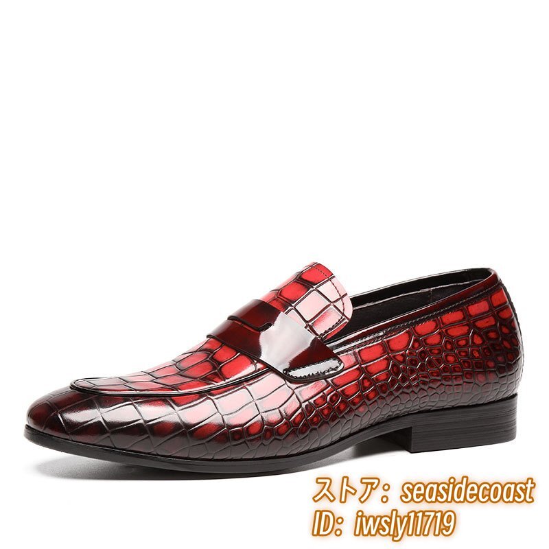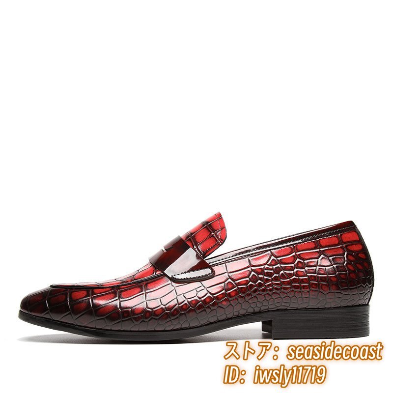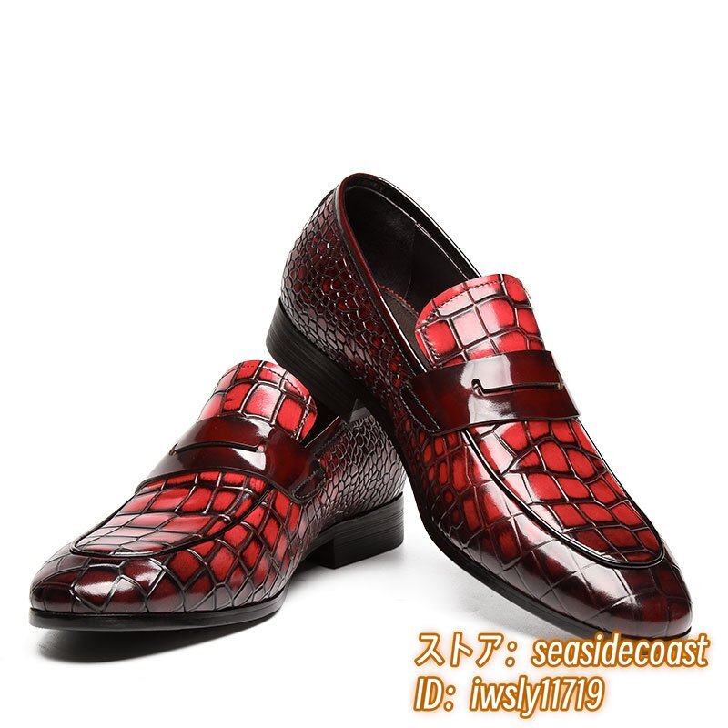 極希少◆上級牛革 ビジネスシューズ 本革 紳士靴 革靴 ローファー 職人手作り レザーシューズ スリッポン 宴会 フォーマル レッド 26.5cm