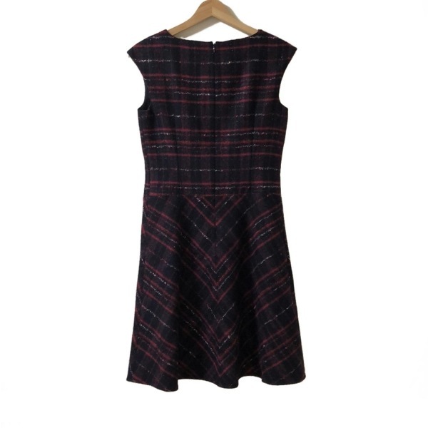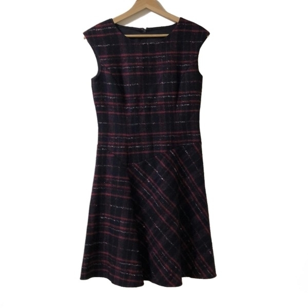 アナイ ANAYI サイズ36 S - 黒×ボルドー×白 レディース クルーネック/半袖/ロング/チェック柄/ラメ ワンピース