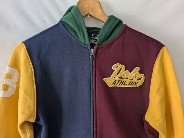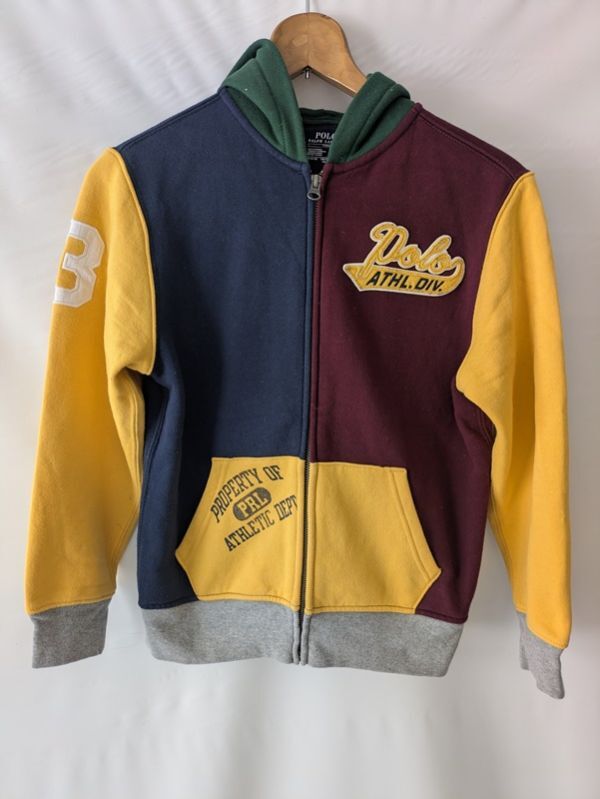 POLO Ralph Lauren ポロラルフローレン 子供用 ジップアップパーカー M 150サイズ カレッジプリント 数字ワッペン 刺繍 マルチカラー
