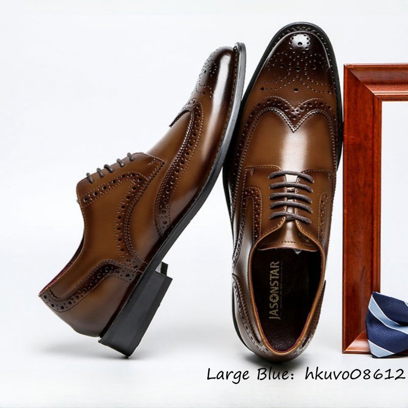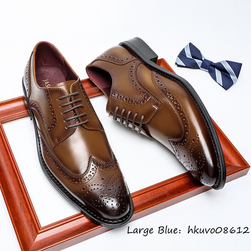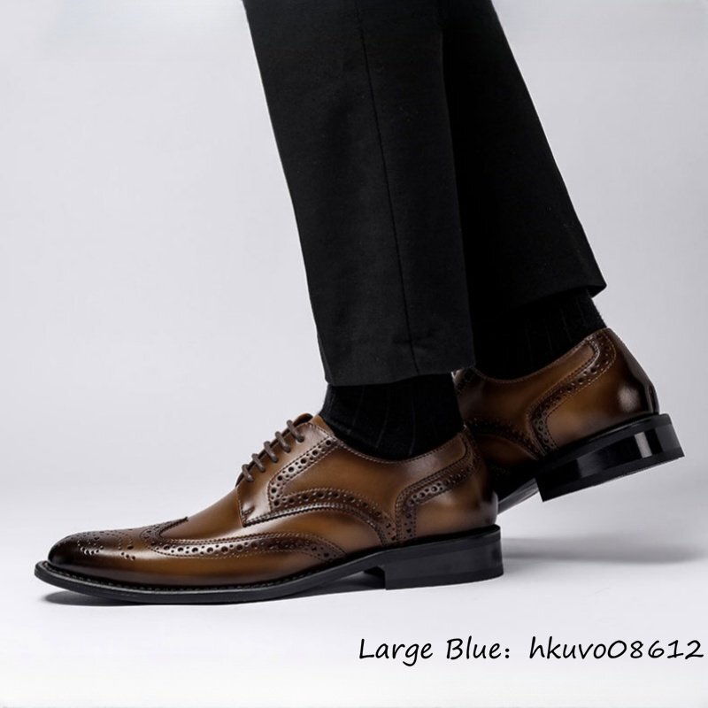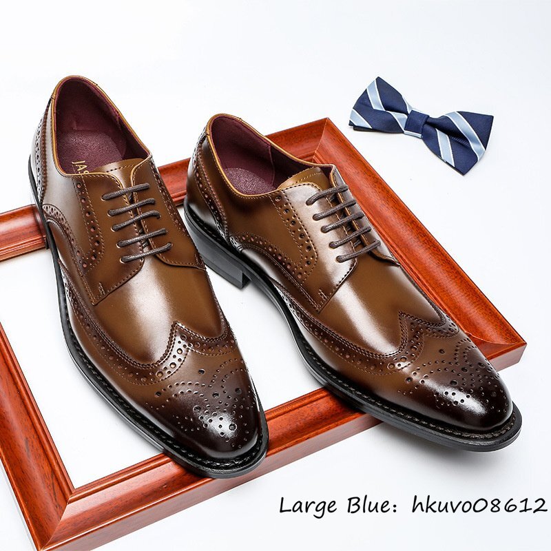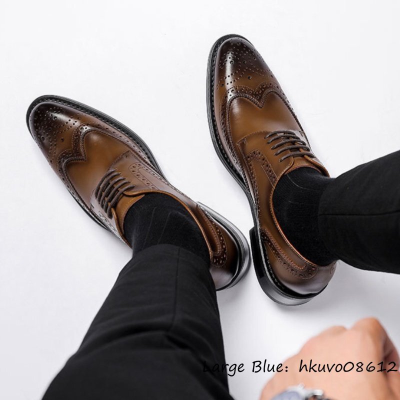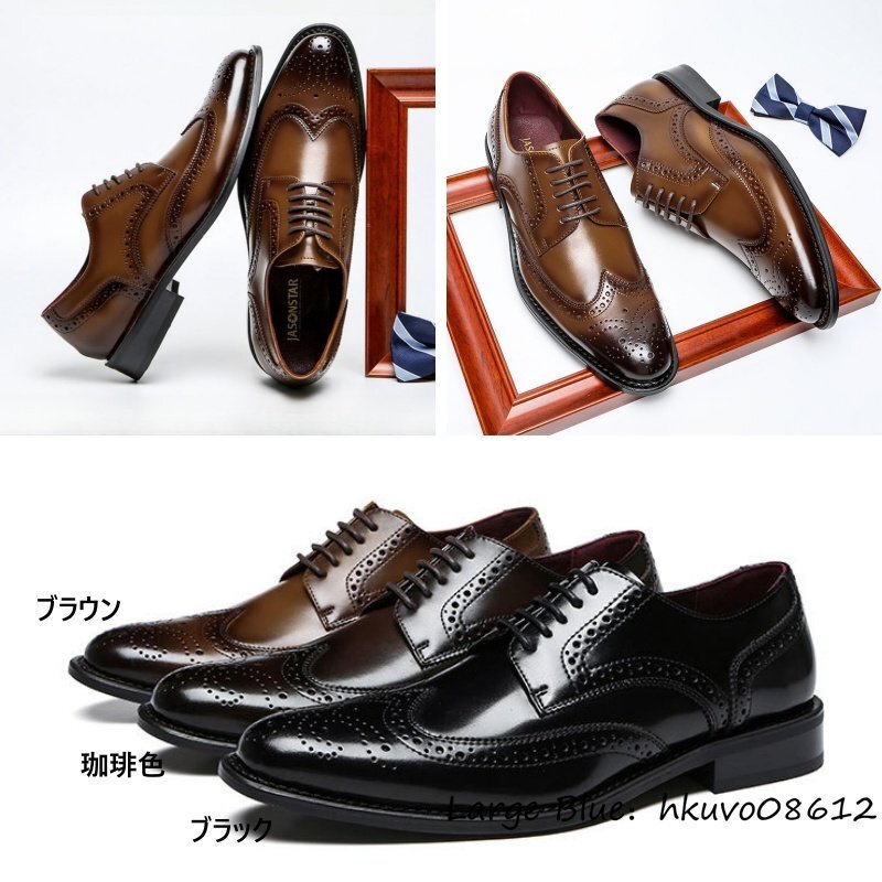 新品■ビジネスシューズ 本革 メンズ レザーシューズ 職人手作り 彫り 通気性 皮靴 ウイングチップ 紳士靴 高級牛革 通勤 ブラウン 24.5cm