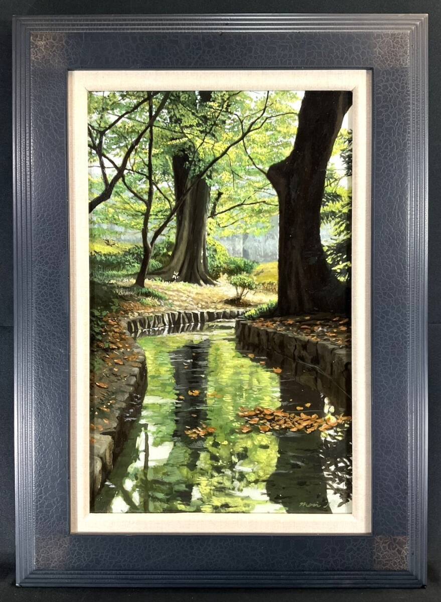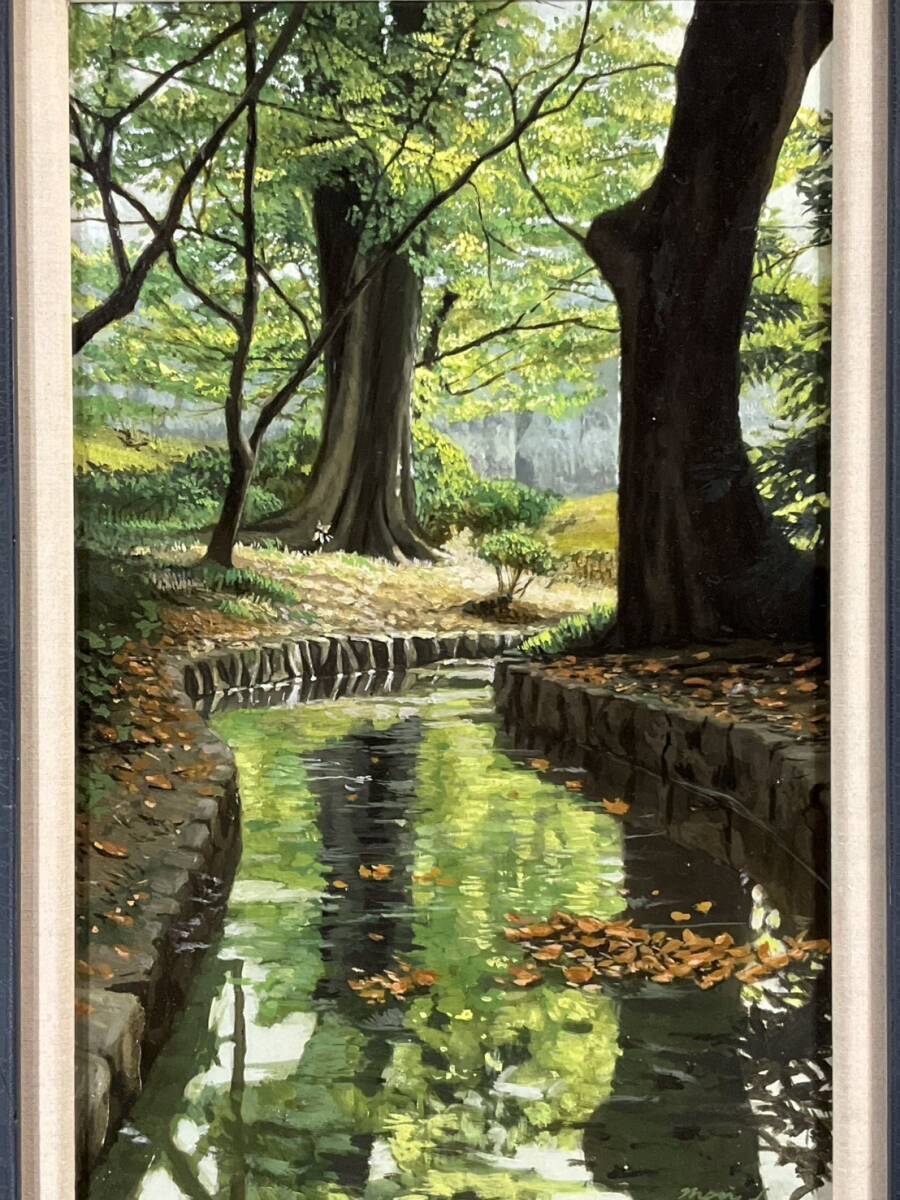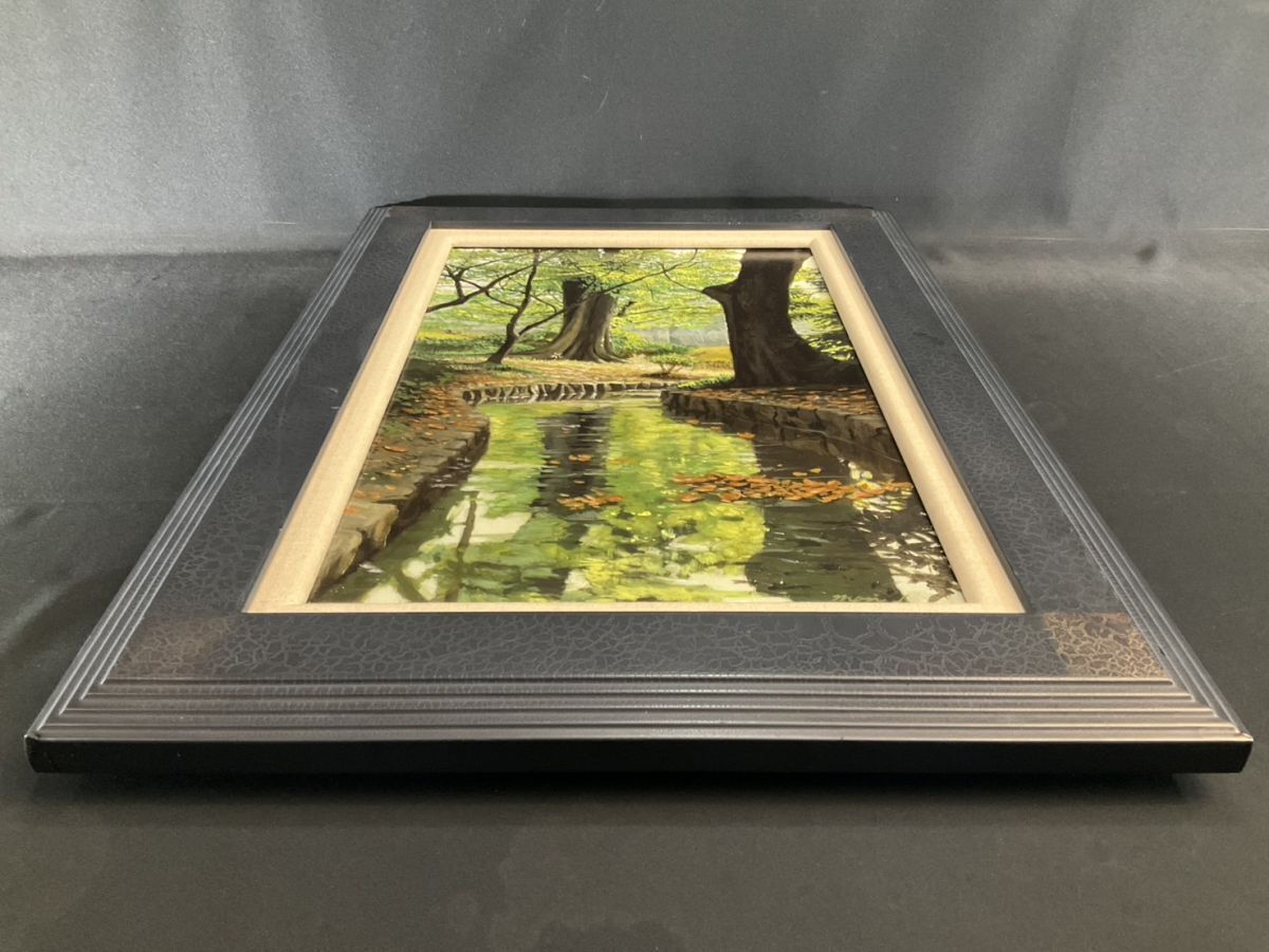 模写■油彩■作者不詳■水辺風景■10M■スーパーリアリズム■額付絵画