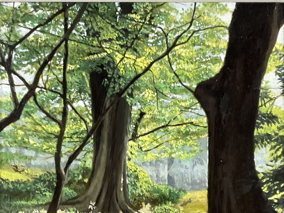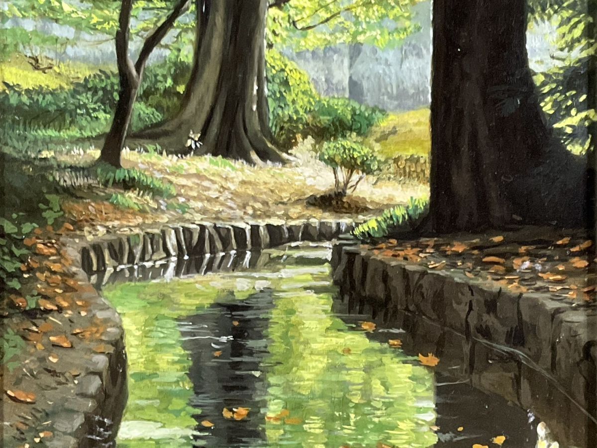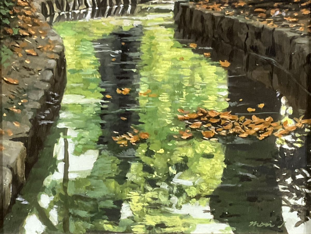 模写■油彩■作者不詳■水辺風景■10M■スーパーリアリズム■額付絵画