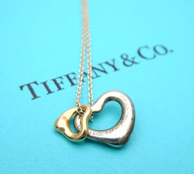 ネックレス Tiffany&Co. ティファニー ダブル オープンハート コンビ 925/750刻印有 総重量約2.4g 箱付 アクセサリー 1円~ K0225