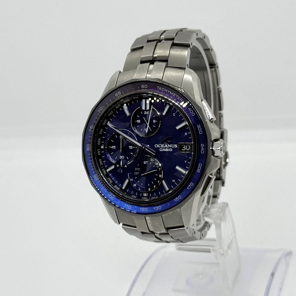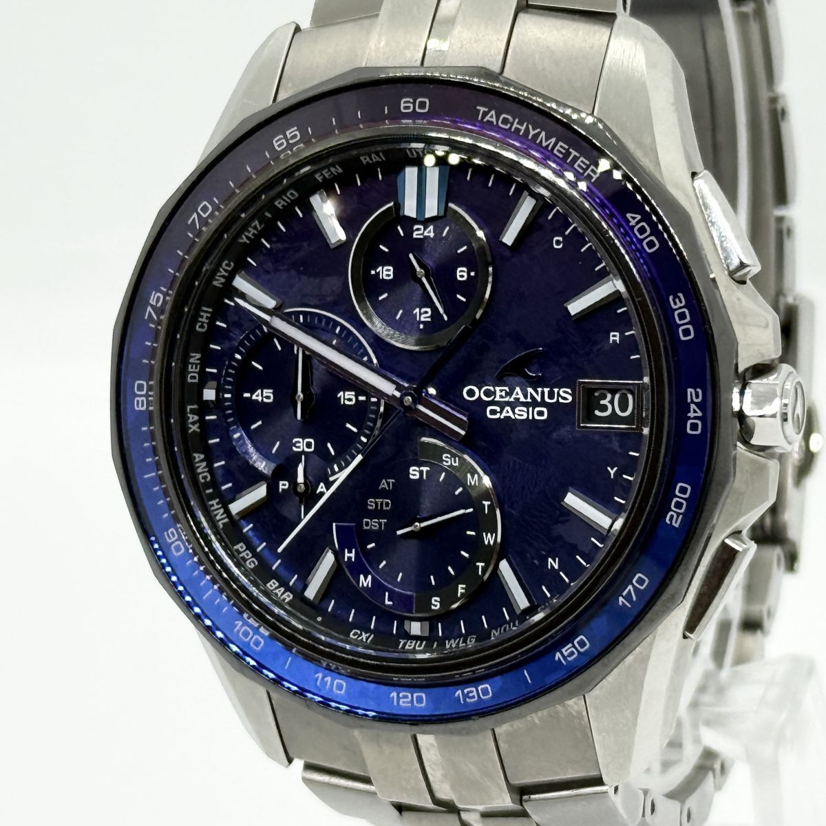 T8010 大還元セール CASIO カシオ オシアナス マンタ メンズ ブルー 1200本限定 電波ソーラー チタン OCW-S7000C-2AJF 稼働 箱 コマ4